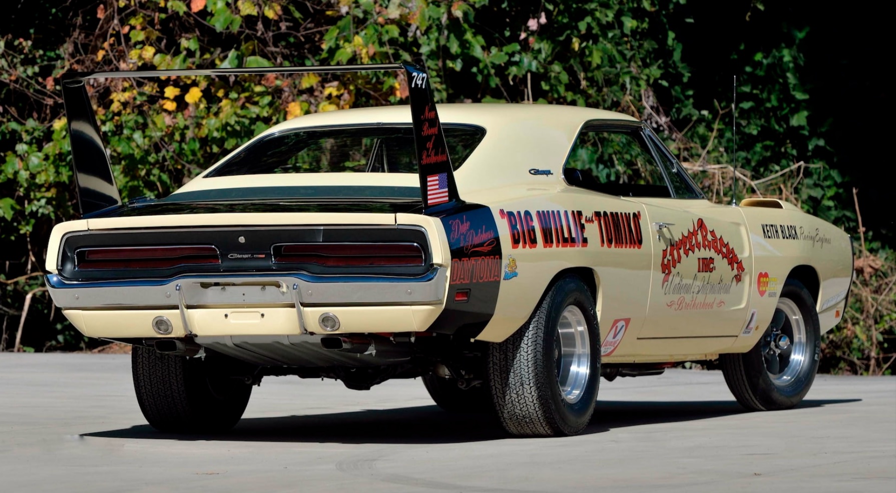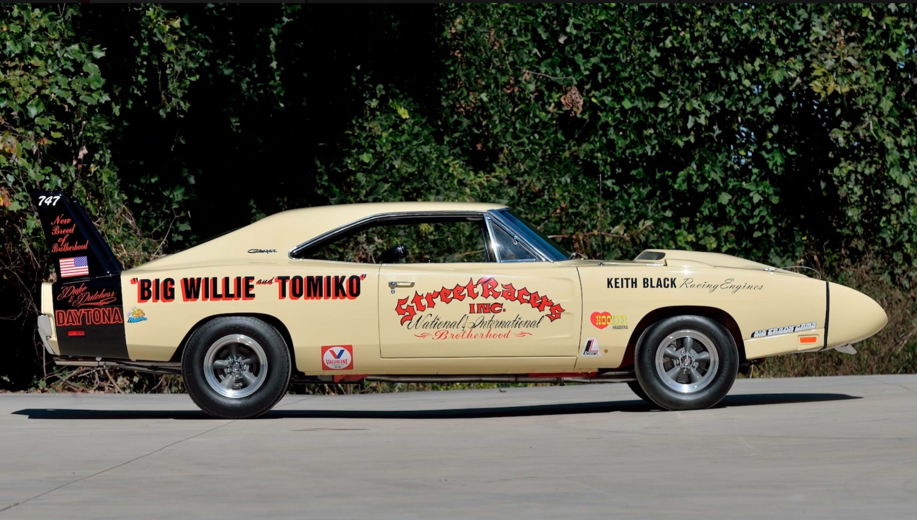 While the wing cars earned their reputation by winning races and breaking records on NASCAR’s high-banked super speedways, there’s one Daytona that made its bones on the mean streets of L.A. and at the drag strips that dotted Southern California in the early 1970s. Big Willie Robinson and his wife, Tomiko, created the National and International Brotherhood of Street Racers. This organization was created to help quell the social unrest that was part of the fabric of the late 1960s, especially in numerous Los Angeles neighborhoods, by bringing car enthusiasts from every walk of life together. Big Willie and Tomiko both owned and raced a pair of Daytonas until both cars were destroyed. That led to the couple purchasing a third Daytona, known as “The Duke and Duchess.” Big Willie and Tomiko raced it until the late 1970s, then the car got parked for the next three decades. After going through numerous owners, and having a rough life, the iconic Daytona with a unique history eventually got restored to its “as raced condition” including first applying the original ‘R4 Bright Red’ paint, then shooting with the same shade of Cream applied by Big Willie back in the day.