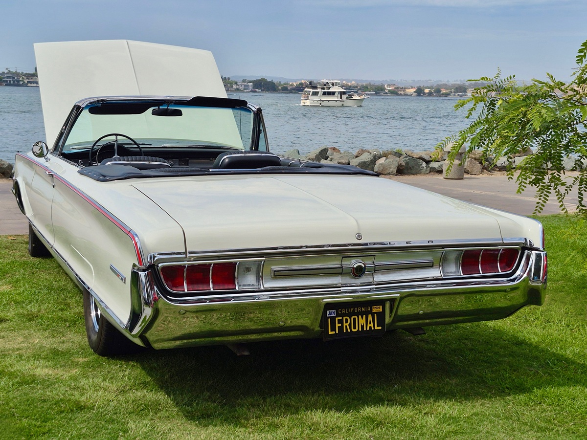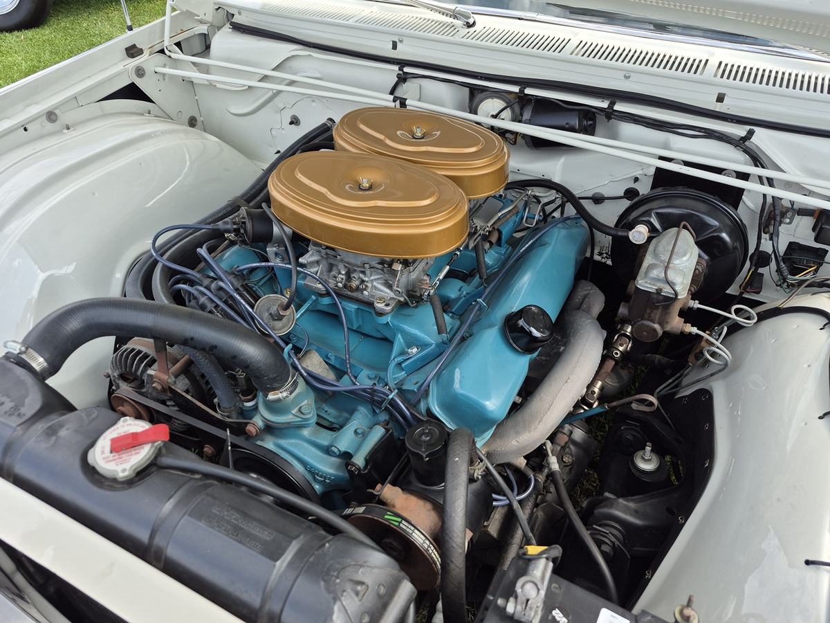 1965 Chrysler luxury with performance came with the Chrysler Letter Car (300-L) which was factory-fitted with the 413 Raised Block engine that delivered 360 horsepower, plus featured heavy-duty brakes and suspension. 300-L models are considered the last of the “real” 300 Letter Cars. The convertible version had a shipping weight of 4,170 pounds and records indicate a total of 440 were built. This particular one is now upgraded with a 2×4 intake from a previous model year Letter Car.