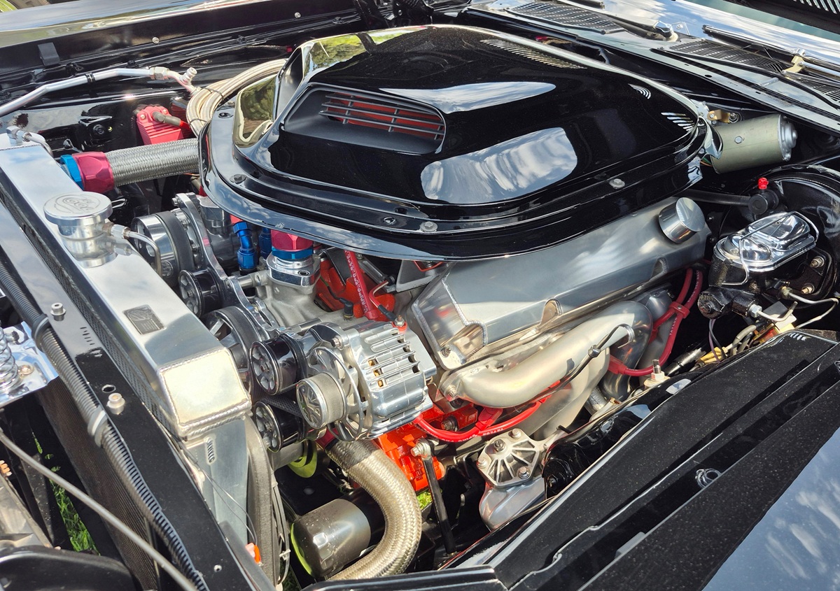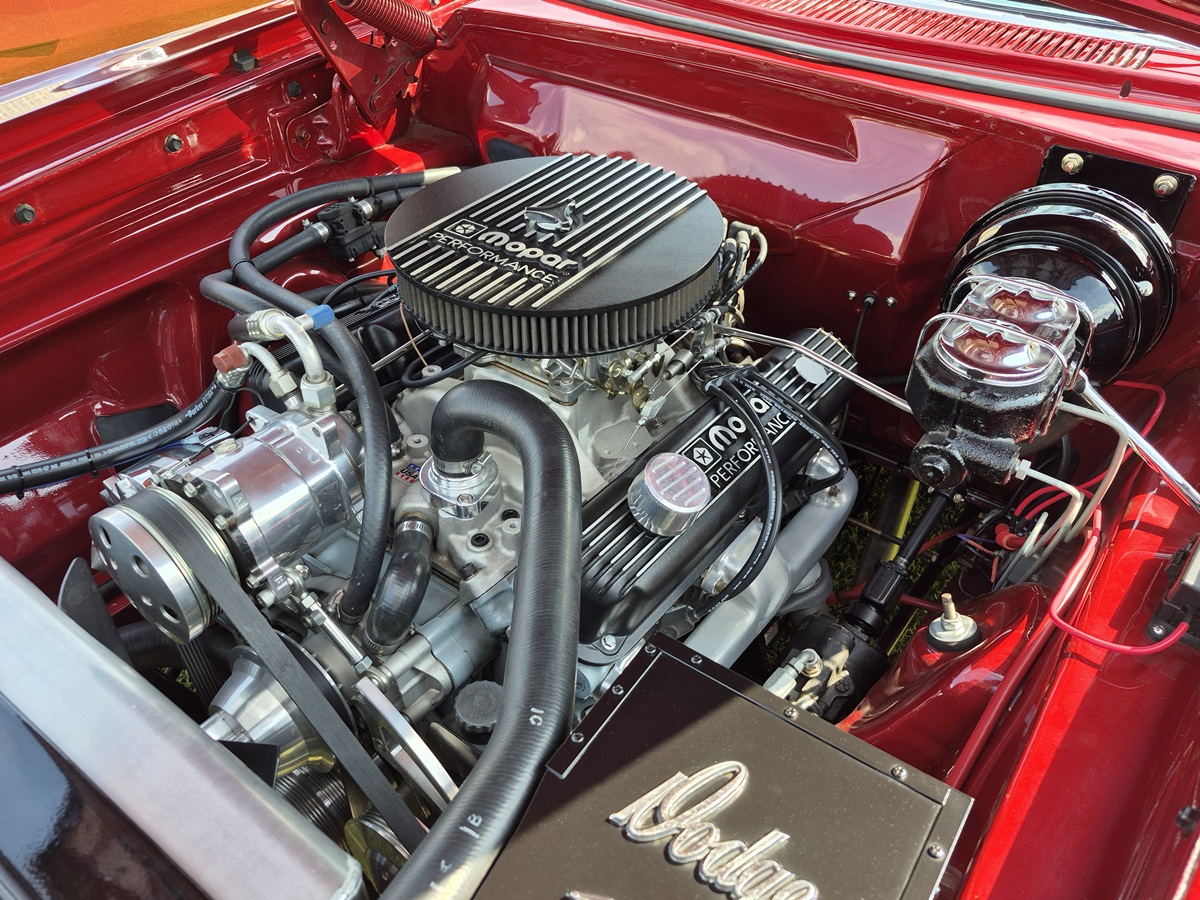A well-presented Mopar small block provides the power, and the detailing of the engine and underhood area in general is most impressive!!
