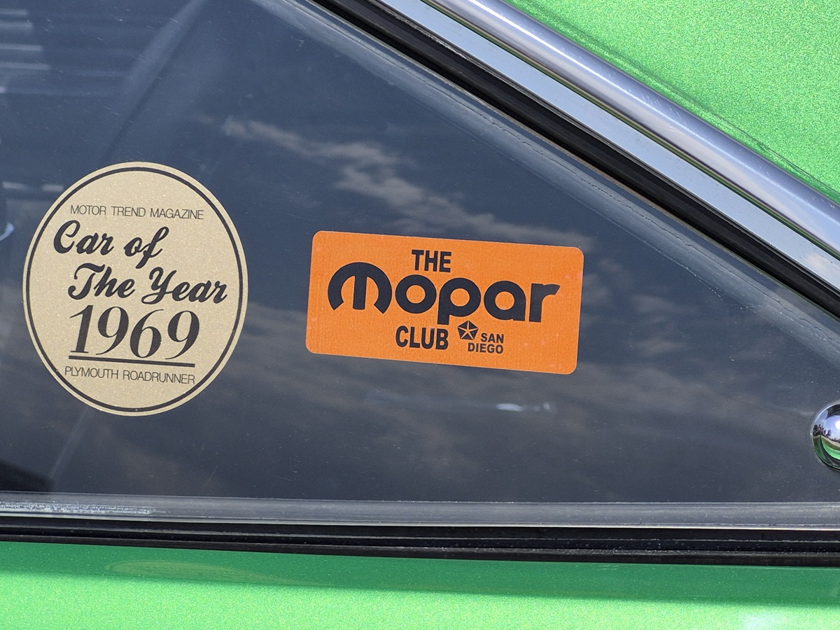 Side window sticker added so no one mistakes their pride in being a Mopar Club of San Diego member!
