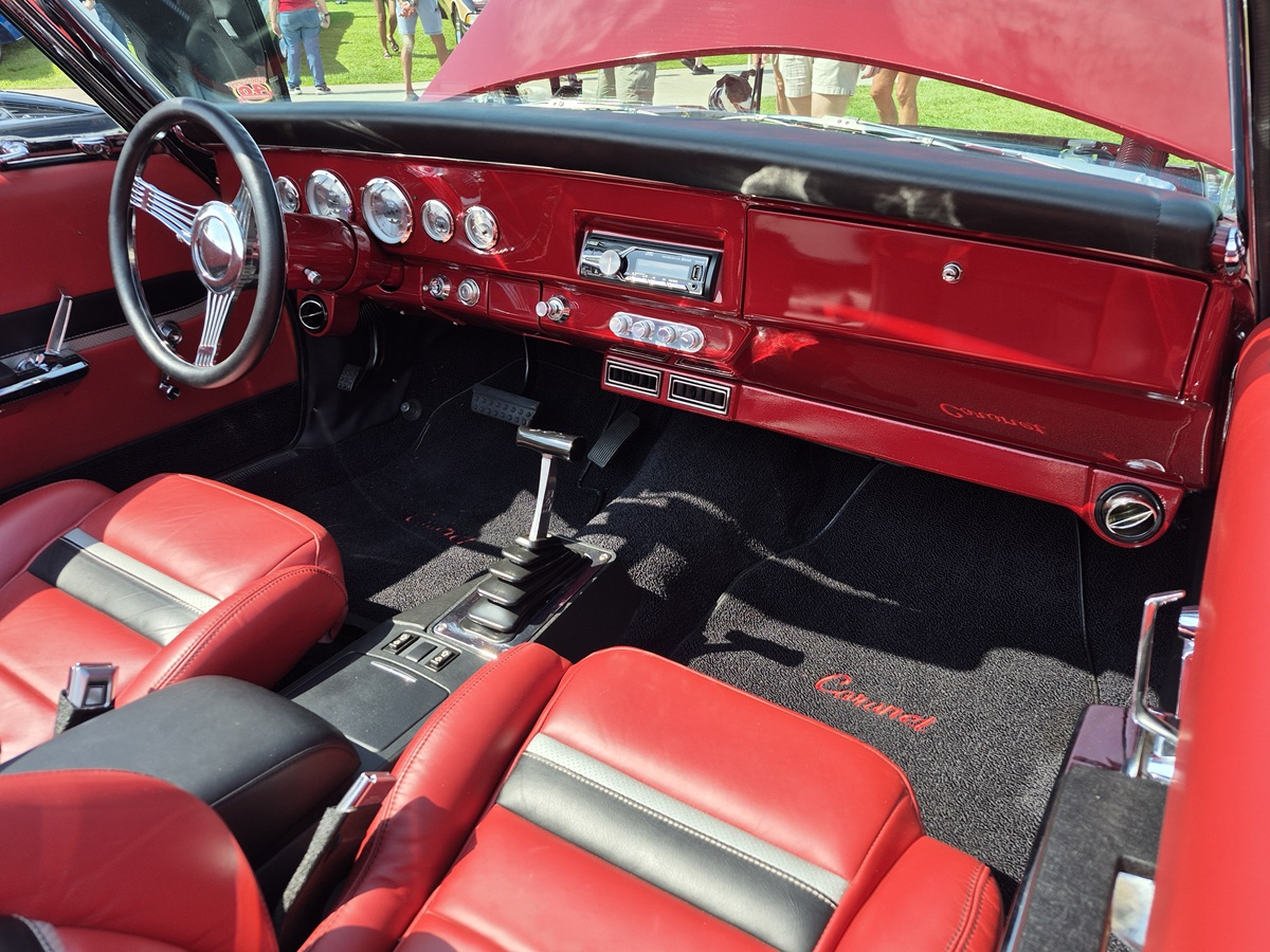 A look inside shows the A/C, updated steering wheel, wood-grain treatment on the dash / center console and doors, a nice touch for certain. Peace out!