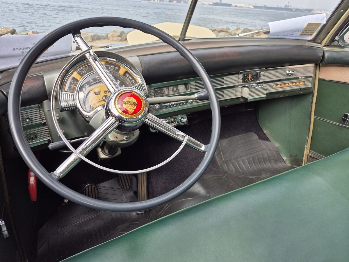 A new safety feature for 1949 was the padded dash; and the 18-inch-diameter steering wheel was the way it was before the invention of power steering.