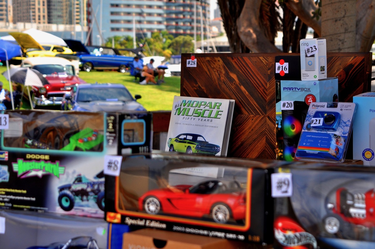 A large gazebo with a vast assortment of raffle prizes included many Mopar-related items. Raffle ticket purchasing was brisk with the crowd watching and enjoying the process. A fun time was had by all.
