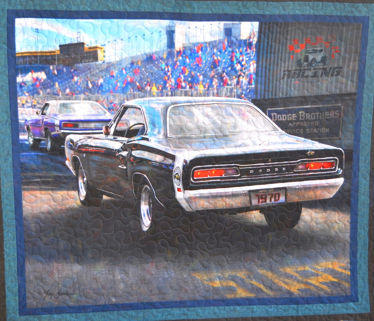 A spectacular Mopar-oriented quilt was the crown jewel of the raffle! It’s a one-of-a-kind design by talented Fran VanderSchaaf. Wild!