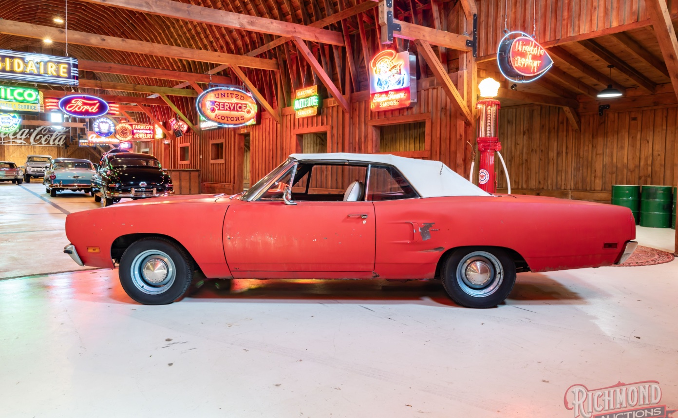 This well-optioned unrestored 1970 Plymouth Road Runner convertible was a diamond in the rough. Powered by a numbers-matching 440 Six Barrel engine and four-speed transmission with a Hurst Pistol Grip shifter, it’s a rare example. This Road Runner had great bones, as many of the original parts were still on it. Only 20 1970 Plymouth Road Runners convertibles were built with the 440 Six Barrel, four-speed combination. Originally painted in EB3 Blue, it was ordered was tons of options such as power brakes, console, bucket seats, variable speed wipers, tach, air grabber hoods, power windows and more. This unrestored Road Runner will be on display at the 2025 Muscle Car and Corvette Nationals (MCACN) before undergoing a complete nut-and-bolt restoration.