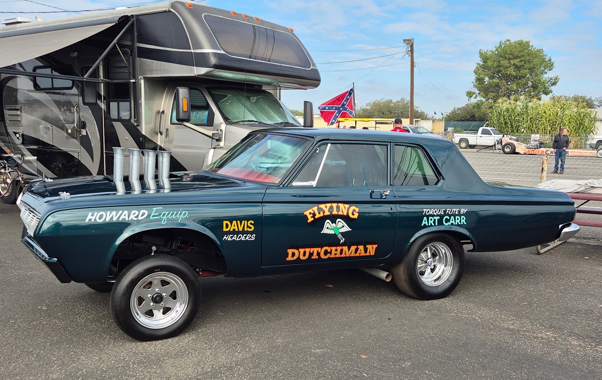 Done up with a Gen II injected HEMI engine, a ’64 Plymouth Savoy 2-door post to honor Al Vander Woude’s Flying Dutchman car from back in the day. A very unique early drag car, the rear axle moved forward, front wheels in stock position, and this tribute was very well detailed right down to the accurate lettering.