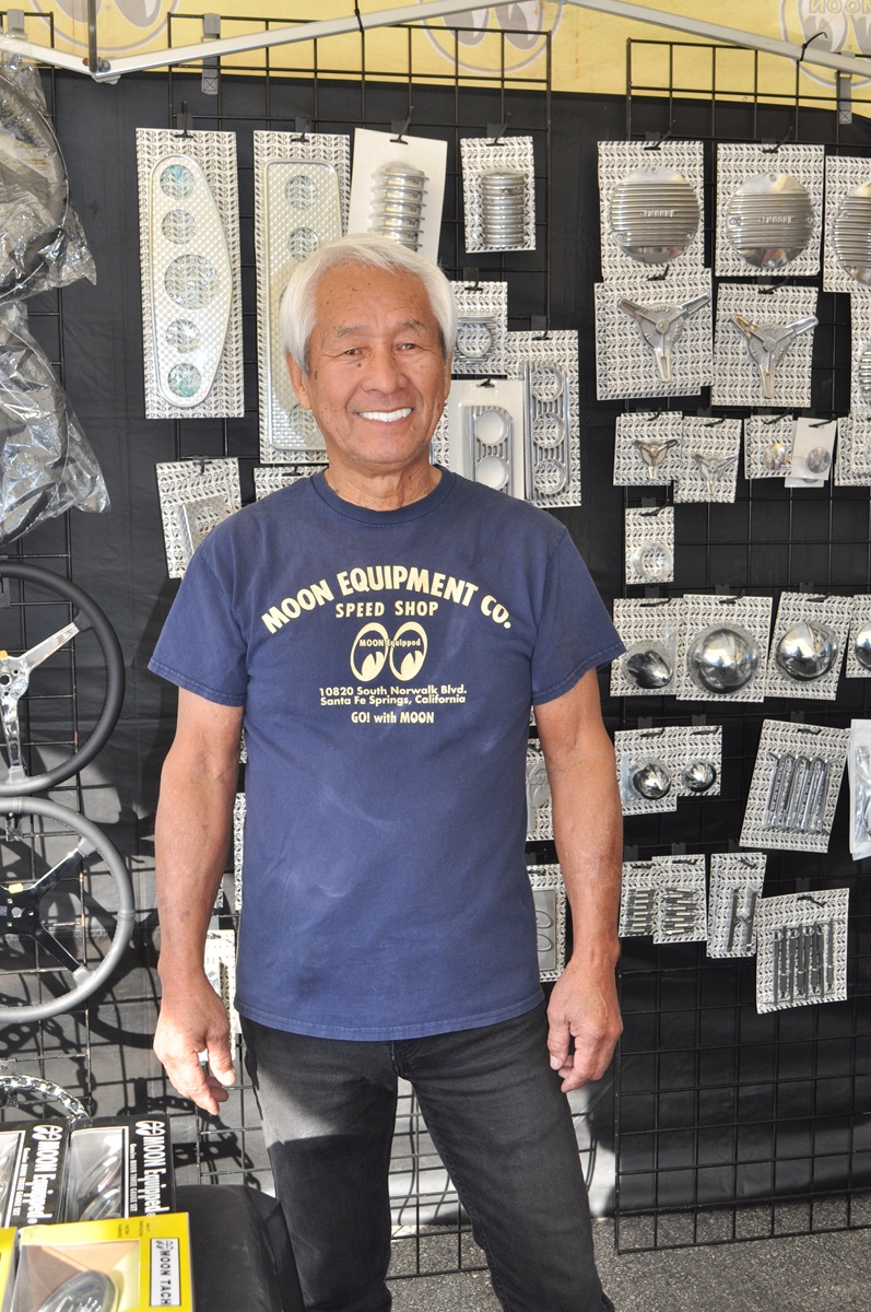 Chico Kodama displayed the Moon Equipment Co. merchandise and a hot seller as always was the “Mooneyes” apparel, a famous speed-equipment logo that’s been a mainstay for decades.
