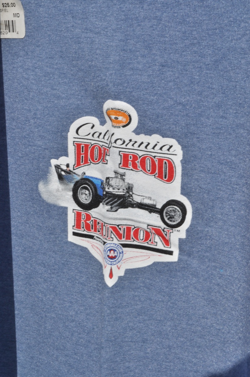 Of course, a “must have” shirt for loyal nostalgia groupies is the official “California Hot Rod Reunion” logo, complete with short-wheelbase dragster with a Gen I supercharged HEMI engine!