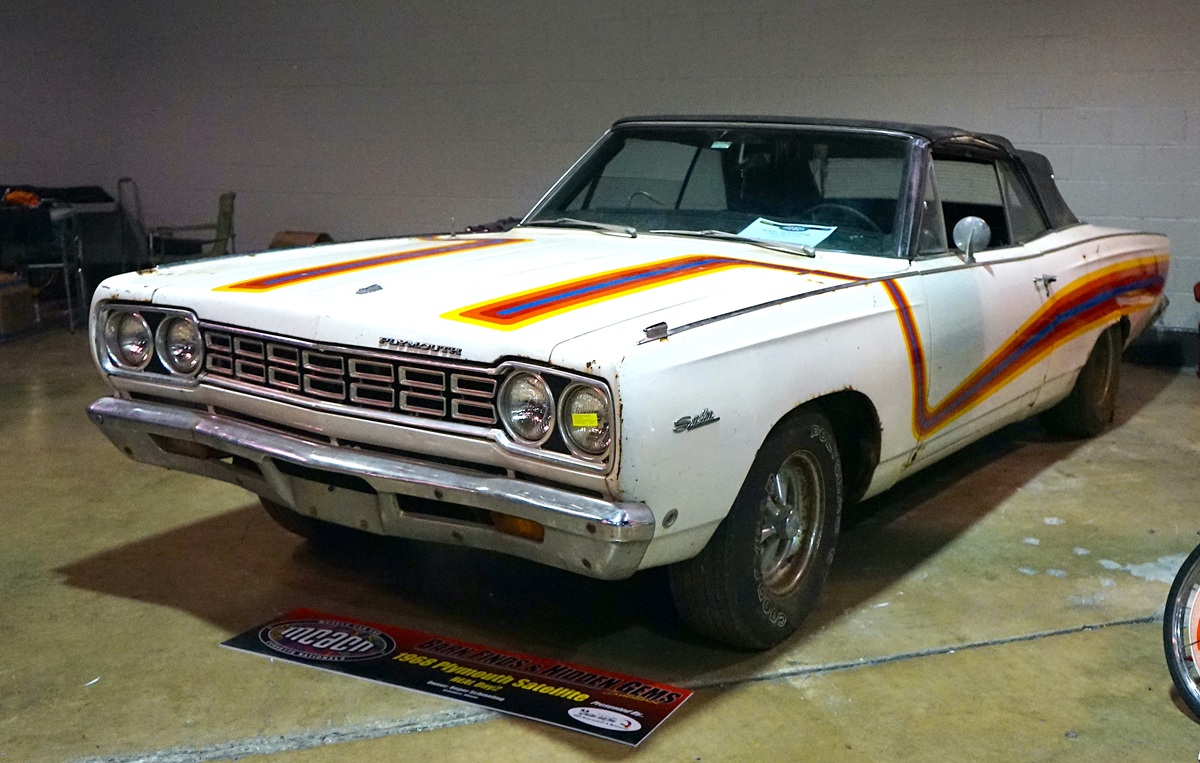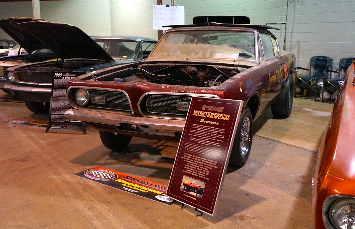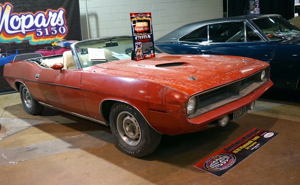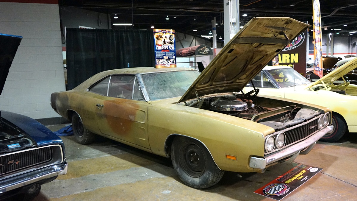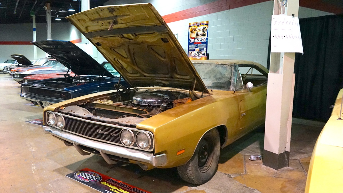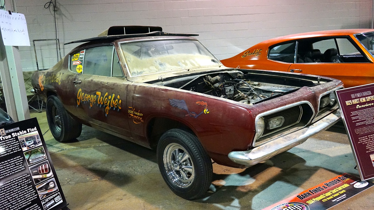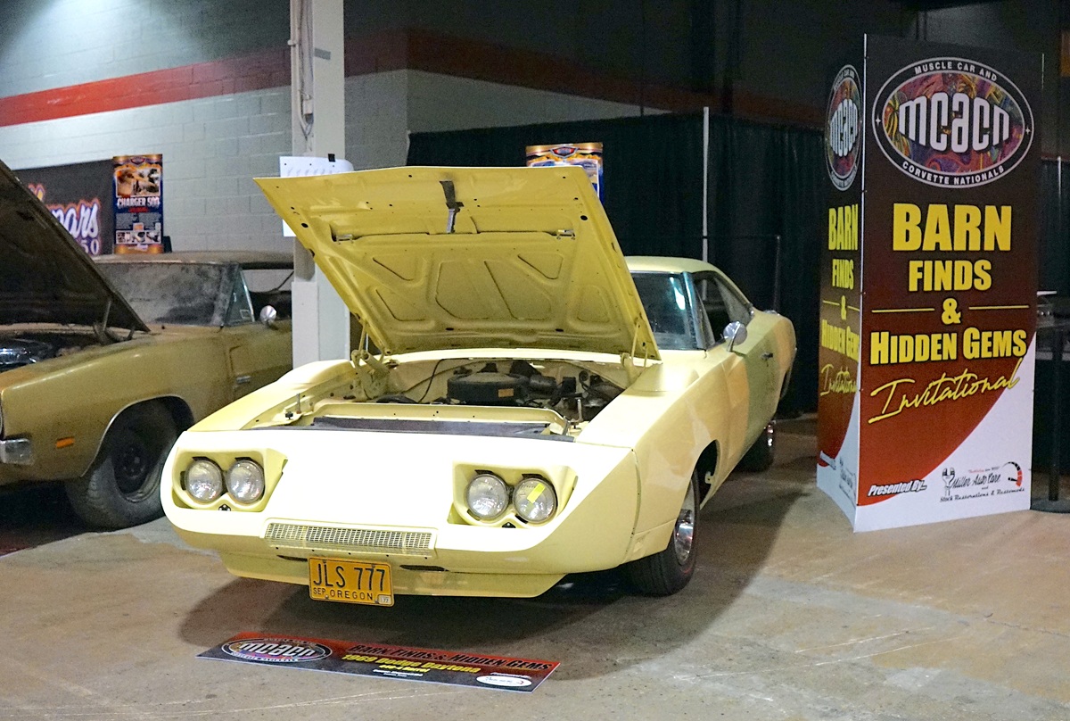 The people responsible for rounding up these cars that, in some cases, have been rescued from the jaws of death or even the scrap heap, are Bob Ashton and Ryan Brutt. These two have worked together for years, and the Barn Finds and Hidden Gems Invitational at MCACN is a sight to behold in all its grubby glory. While many makes and models of tattered muscle cars comprise the exhibit, it was the Mopar® vehicles that really drew the crowds in. The variety of remnants from the Dodge Scat Pack, which included both a 1969 Charger Daytona, Charger 500 and 440 Six Pack Super Bee, along with a 1968 Charger R/T, had a non-stop crowd surrounding them. The old defunct Plymouth brand was also well represented with a real ‘V-Code’ 1970 Plymouth Road Runner Convertible powered by a 440 Six Barrel engine. But one of the many highlights was a real-deal 1968 Plymouth Super Stock HEMI® Barracuda. It was rough but complete with great history, including the former owners who did battle on the drag strips across the country in both Super Stock and after a facelift to 1969 trim, Pro Stock.
