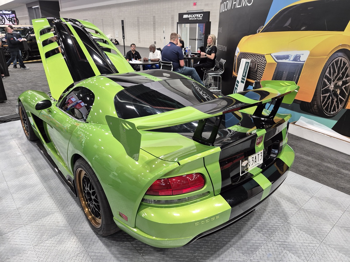 At a massive event like the SEMA Show, grabbing attention is everything – and having a standout vehicle in your booth makes all the difference. MaxPro Window Films nailed it with a Snakeskin Pearl Green Viper that delivered serious visual impact and turned plenty of heads.