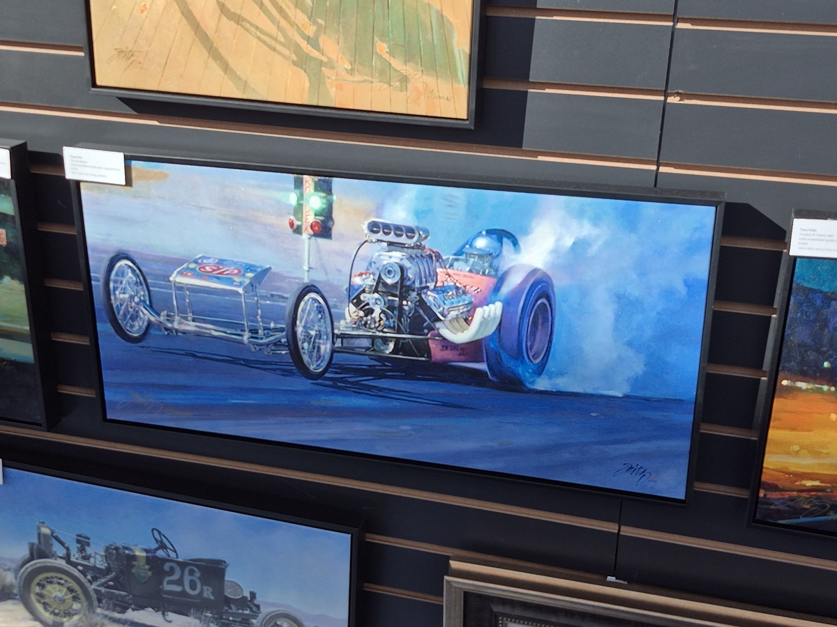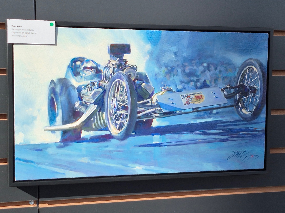 In tribute to his friendship with legendary HEMI engine builder Ed Pink (1931–2025), artist Tom Fritz created the stunning The Old Master – a piece capturing one of the top-performing dragsters of the mid-1960s. The featured car, built on a Don Long chassis, earned its place in history when Mike Snively drove it to victory at Bakersfield in 1965.
