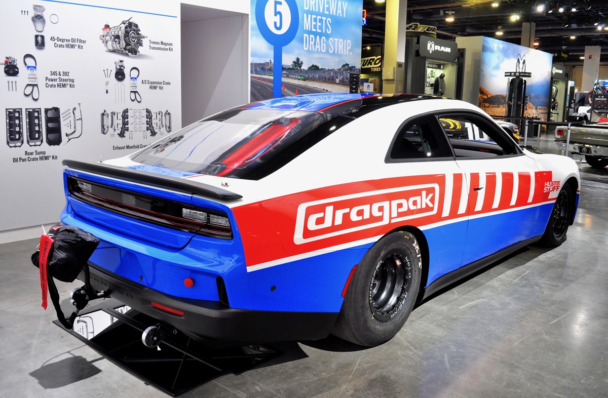 It was in the Mopar exhibit area where Dodge launches its first Dodge Charger Drag Pak: the all-new 2026 Dodge Charger Hustle Stuff Drag Pak by Direct Connection. The brand’s newest purpose-built racecar unites SRT® race HEMI® engine power with a drag-race-ready version of the new Dodge Charger. The Charger Hustle Stuff Drag Pak is constructed with select carbon-fiber components, creating a new racecar that is 100 lbs. lighter than the previous Challenger Drag Pak. The new drag package car is powered by a championship-proven supercharged 354-cubic-inch HEMI V8 engine and is turnkey capable of sub-eight-second elapsed times. These engine upgrades include a new GEN III aluminum HEMI engine block, all-new H-beam connecting rods, Diamond aluminum pistons, forged-steel eight-counterweight crankshaft and new high-performance lightweight billet supercharger belt tensioner.