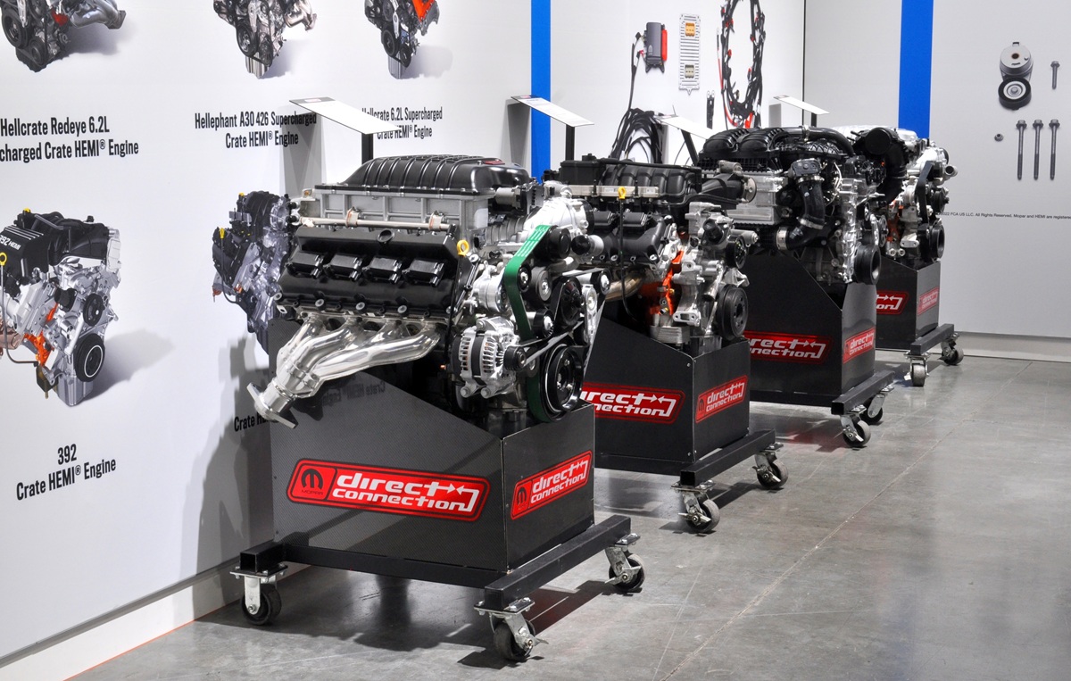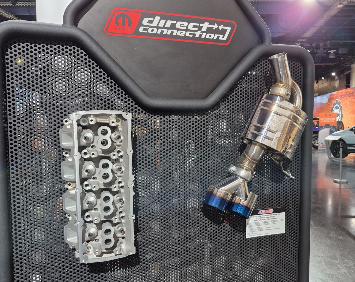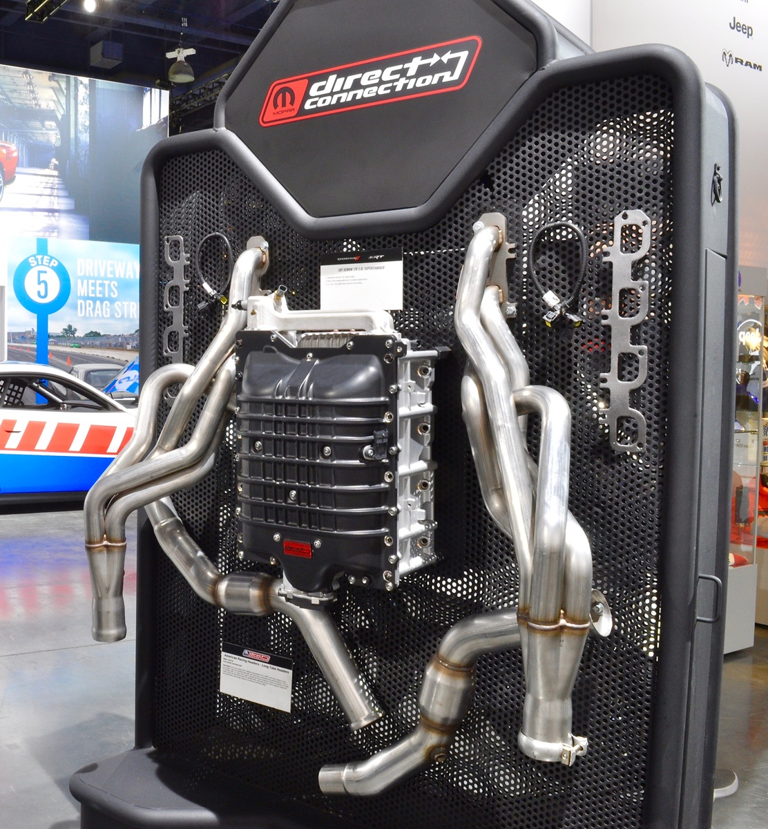Numerous Direct Connection components were displayed, be it the SRT Demon 170 3.0L supercharger, long-tube headers, Redeye differential assembly, Redeye driveshaft, Redeye cylinder heads and kits, plus SRT Hellcat 707 exhaust systems.