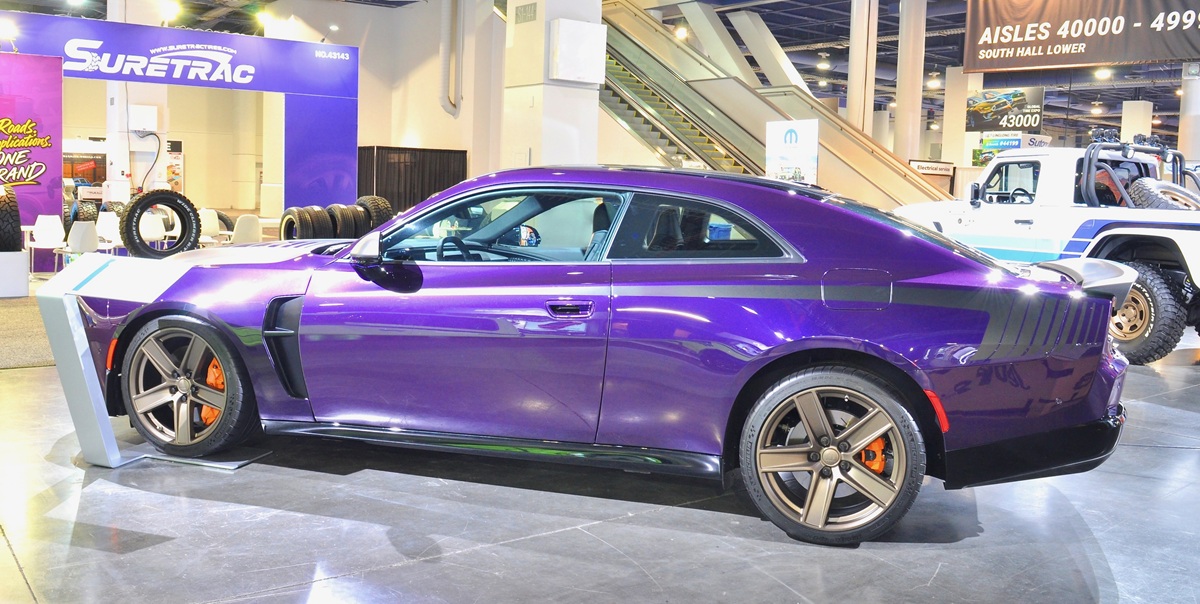 Presented in vivid Stryker Purple exterior hue, out front of the Mopar area was a “Moparized” Dodge SIXPACK Charger concept that the factory designers and engineers set out to build upon the continuing evolution of this modern muscle car, doing so by adding a wide array of exterior performance and interior upgrades. SIXPACK is complemented with satin carbon-fiber accents. Lightweight carbon-fiber components, including the hood, front splitter and rear decklid spoiler, enhanced airflow and downforce for real-world performance gains. Concept vented fenders add to the improved aero performance by releasing air pressure from inside the wheel wells.