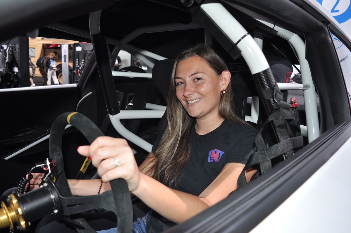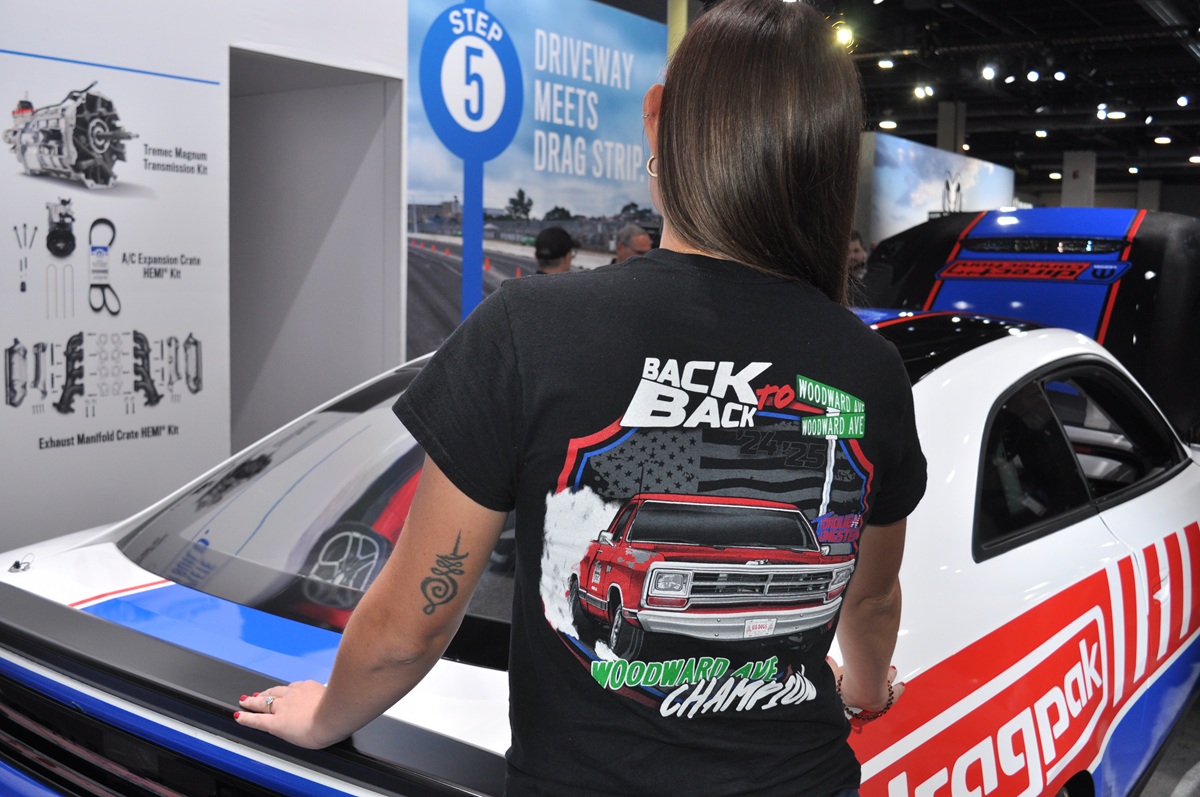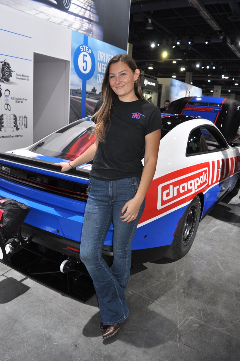 Accentuating the sculpted, crisp lines of the SIXPACK’s carbon rear spoiler, marketing and product specialist Vanessa Reyes was there to promote the latest Dodge, Direct Connection and Hustle Stuff concept vehicles and equipment. This is an exciting place to see the latest Mopar vehicles, parts, pieces, people and displays!