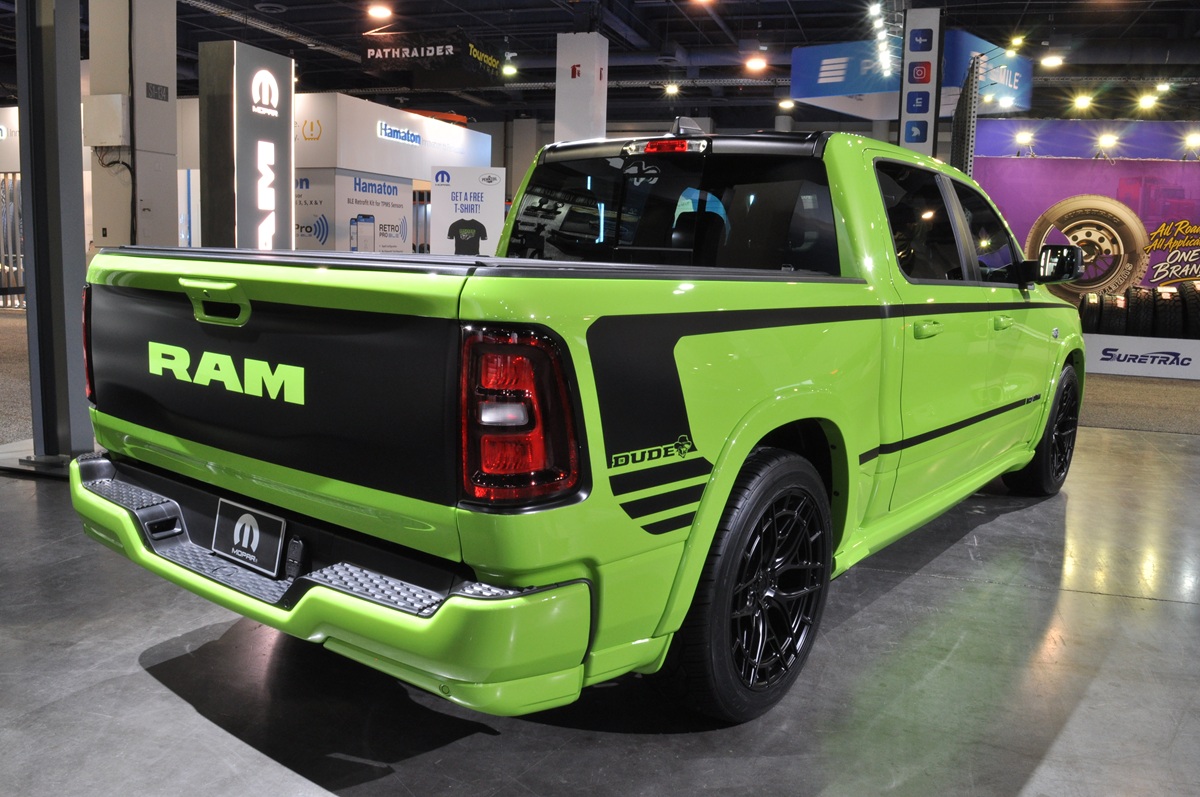 This Sublime Green Ram concept “Dude” is an eye-catching rig that is based on a Ram 1500 Big Horn, with the flavor that calls back to the original The Dude Sport Trim Package from 1970, of which only about 2,000 units were produced.