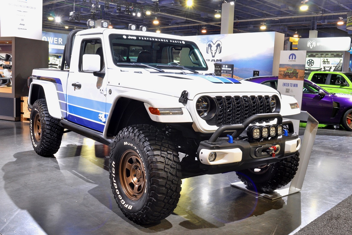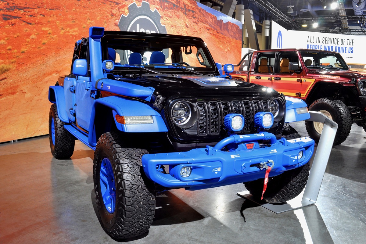 Carrying more than 35 Jeep accessories, this one is a rolling catalog of factory-tested and factory-backed Mopar and Jeep Performance Parts (JPP). Known as the 4xe Blueprint Concept, the stance is dictated by its 2-inch suspension lift and 37-inch KO3 BFG All-Terrain Tires. For getting through the toughest of situations, including even if submerged in water, it’s equipped with the Jeep Snorkel Kit. The general idea is to showcase the multitude of different combinations of accessories, to suit any off-road enthusiast preference.