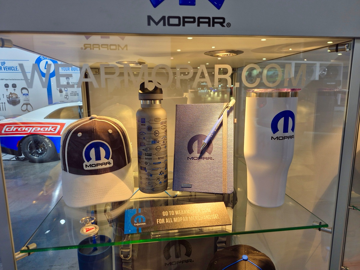 Walking through the huge floor plan of the exhibit, there were display cases highlighting the latest assortment of available Mopar-branded wearables, keychains, mugs and glassware. Each year, the annual SEMA Show Mopar / Direct Connection exhibit offers the Mopar aficionado the place to see it all!