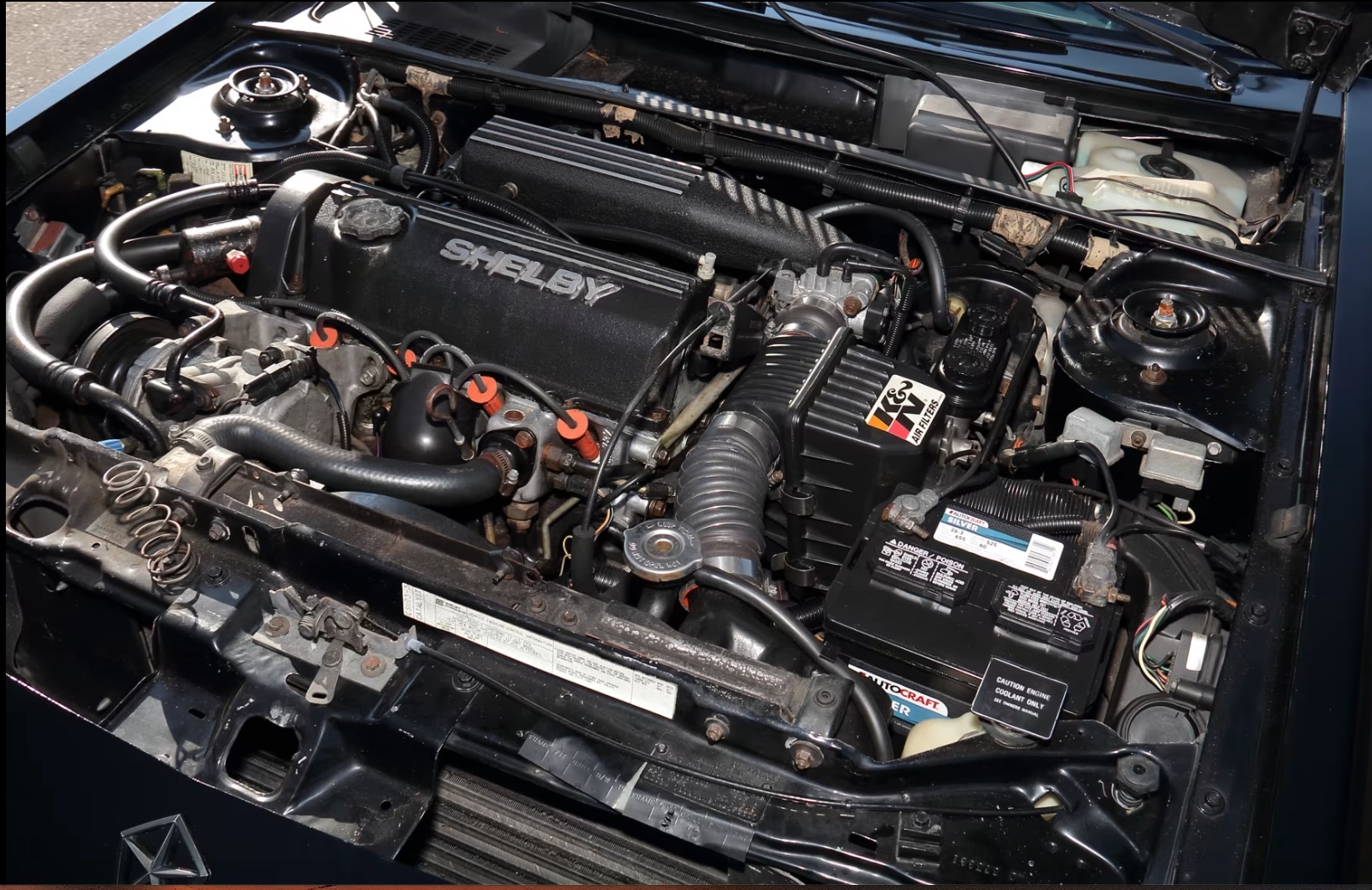 For 1985, the 2.2L engine received multi-port fuel injection and an optional Turbo making 7.5 psi of boost. Now the Shelby Charger’s power rating received a massive jolt and was now at 142 horsepower and 160 lb.-ft. torque. This was a huge leap over the naturally aspirated 2.2L and gave the Shelby Charger serious muscle street creds to go head-on against the V8 Mustang GT and IROC Camaro. Both the Chrysler and Shelby powertrain engineers worked together to add more “beef” to the engine’s internals, such as turbo-specific pistons to withstand increased cylinder pressure, and moly-filled piston rings for better cylinder sealing, select-fit rod and main bearings, and an improved oil pump. The cylinder head also received some updates like high-strength valves, high-rated valve springs and a special camshaft with specific duration, lift and overlap for turbo applications. Even the exhaust manifold was redesigned to properly mount the turbo. A distinctive diecast aluminum cylinder head cover replaced the chrome unit found on non-turbo engines.