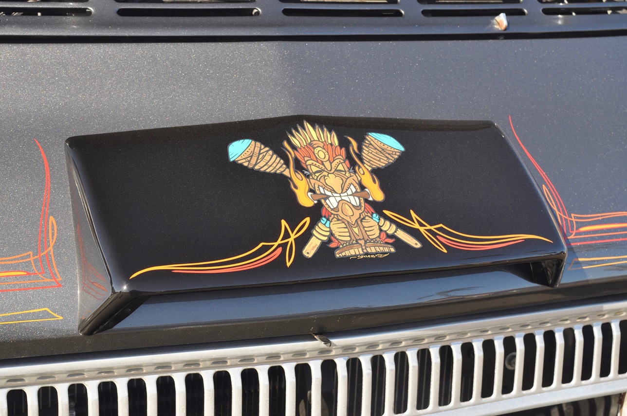 Shag carpeting is but one of the custom features with this 1972 Dodge short-wheelbase van, it’s got the whole “Custom Tiki” theme going on inside and out! Norm Schmidt from nearby El Cajon built it and it’s a fun reminder of just how wild the custom van scene was back in the 1970s. Power from an EFI 318 backed up with the trusty 727 TorqueFlite® transmission.