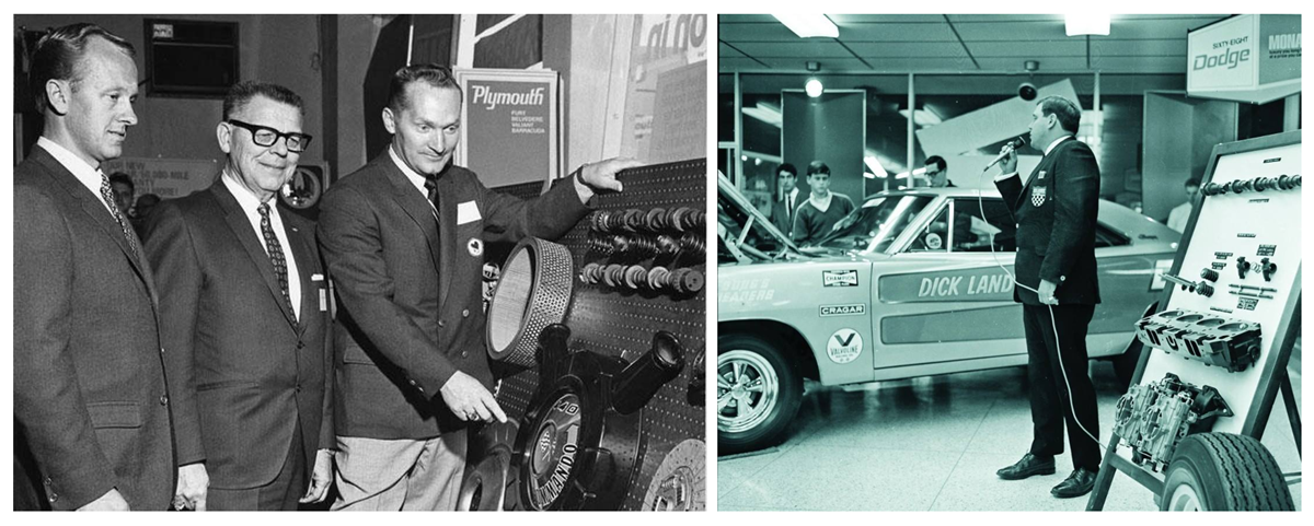 While some of this info was listed in the Sox & Martin and Dick Landy Supercar Clinic brochures they handed out at clinics, it didn’t have massive distribution to really launch the program. The parts marketing was left up to the racers to help promote, but it fell short. A competitor’s main goal is to go faster than the guy in the next lane, not promote camshafts, carburetors, headers, torque convertors, gauges, fluids and other items. At the conclusion of each Supercar Clinic and when the race team’s ramp trucks rolled out of the dealership, Sox & Martin, Dick Landy and other factory-backed racers were focused on defeating the competition. This was one of the factors for Chrysler to finally get serious on a major performance parts program.