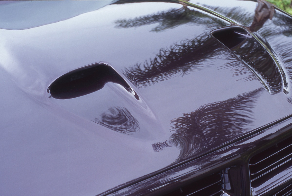 Hand-laid fiberglass functional hood was raised for appearance, not for supercharger clearance.