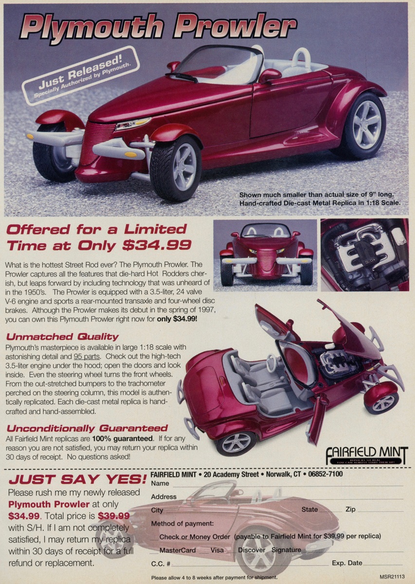 A 1:18 scale Plymouth Prowler could be had for under $40.00.