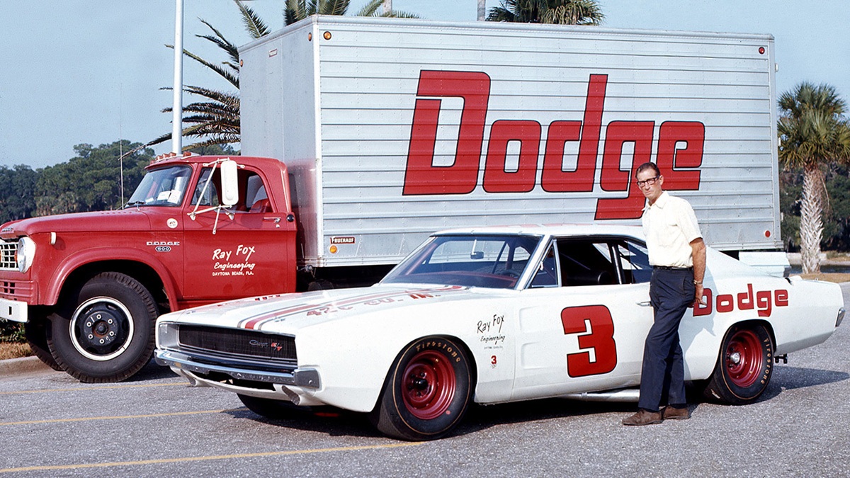 Raymond Fox (car owner) and his #3 Dodge Charger, driven by Buddy Baker. This car won the World 600 that year at Charlotte Motor Speedway.
