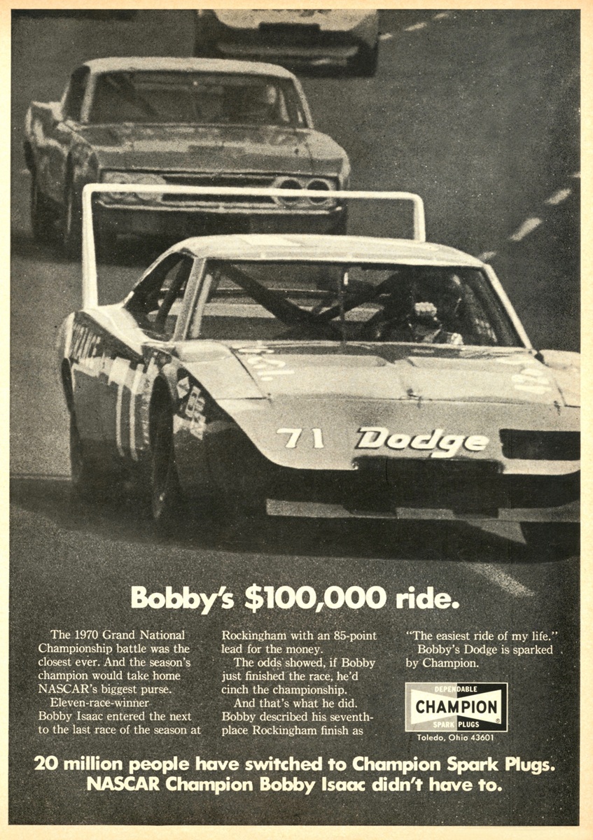 - Bobby Isaac won the 1970 NASCAR Championship behind the wheel of a Dodge.
