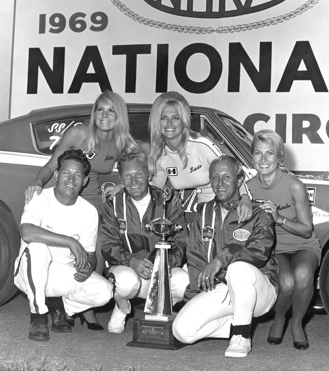 Ronnie Sox found himself in the Winner’s Circle at the 1969 NHRA U.S. Nationals after capturing the Super Stock Eliminator title. Driving the SS/B-class 1968 HEMI Barracuda, Ronnie clinched the victory with a 10.890-second pass at 124.82 mph. Joining the celebration were Linda Vaughn (center), the iconic Hurstettes Nikki and Marsha, along with crew chief Jake King and team partner Buddy Martin – marking another legendary moment in Sox & Martin history.