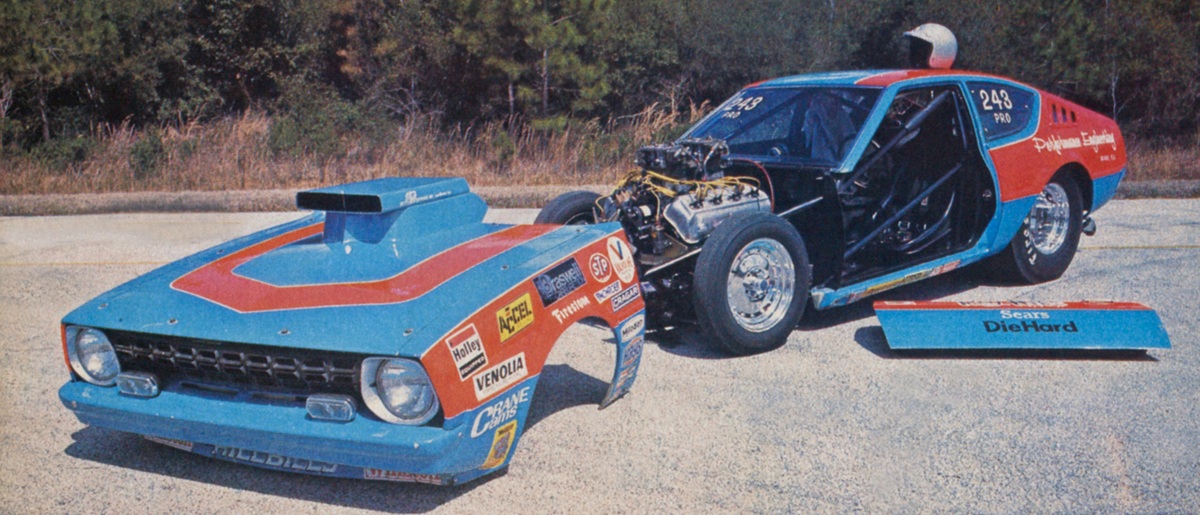The small Plymouth Arrow took part in Pro Stock and Sportsman door-slammer drag racing. However, its biggest impact was in the Funny Car class. It became a very popular choice for racers using Nitromethane and Alcohol Funny Cars! All those details to come, including how Don Prudhomme was involved in its design.