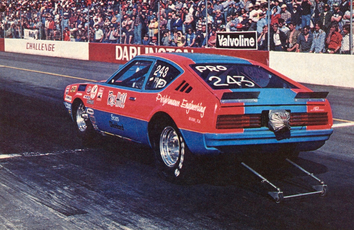 In 1977, Roy Hill from Sophia, North Carolina, introduced a Plymouth Arrow. This car had a HEMI® engine built by Ron Butler. It competed in NHRA and IHRA Pro Stock events and match races. Done up in Petty Electric Blue and STP Dayglow Orange, the “Hillbilly” always had fast Mopar® vehicles! Hill received help from the Petty family through the early years, Maurice included with race HEMI engines.