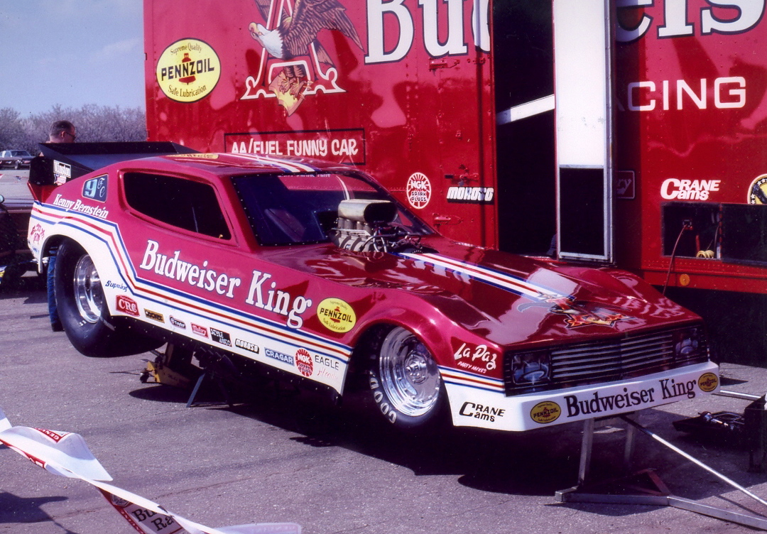 In 1978, Texan Kenny Bernstein fielded the Chelsea King Arrow Funny Car, named after his pub chain’s signature sandwich. With Ed Pink engines, a Steve Plueger chassis and Kenny Youngblood design, it was a top-tier operation. For 1980, Bernstein was able to secure the full sponsorship of Budweiser Beer from Anheuser-Busch. With this car, the Budweiser King, he was able to join the exclusive Cragar 5-second Funny Car Club with a run of 5.99 seconds on March 15, 1981.
