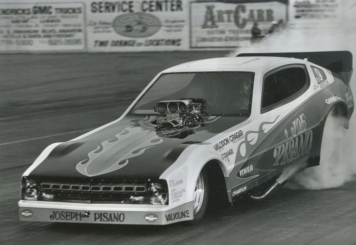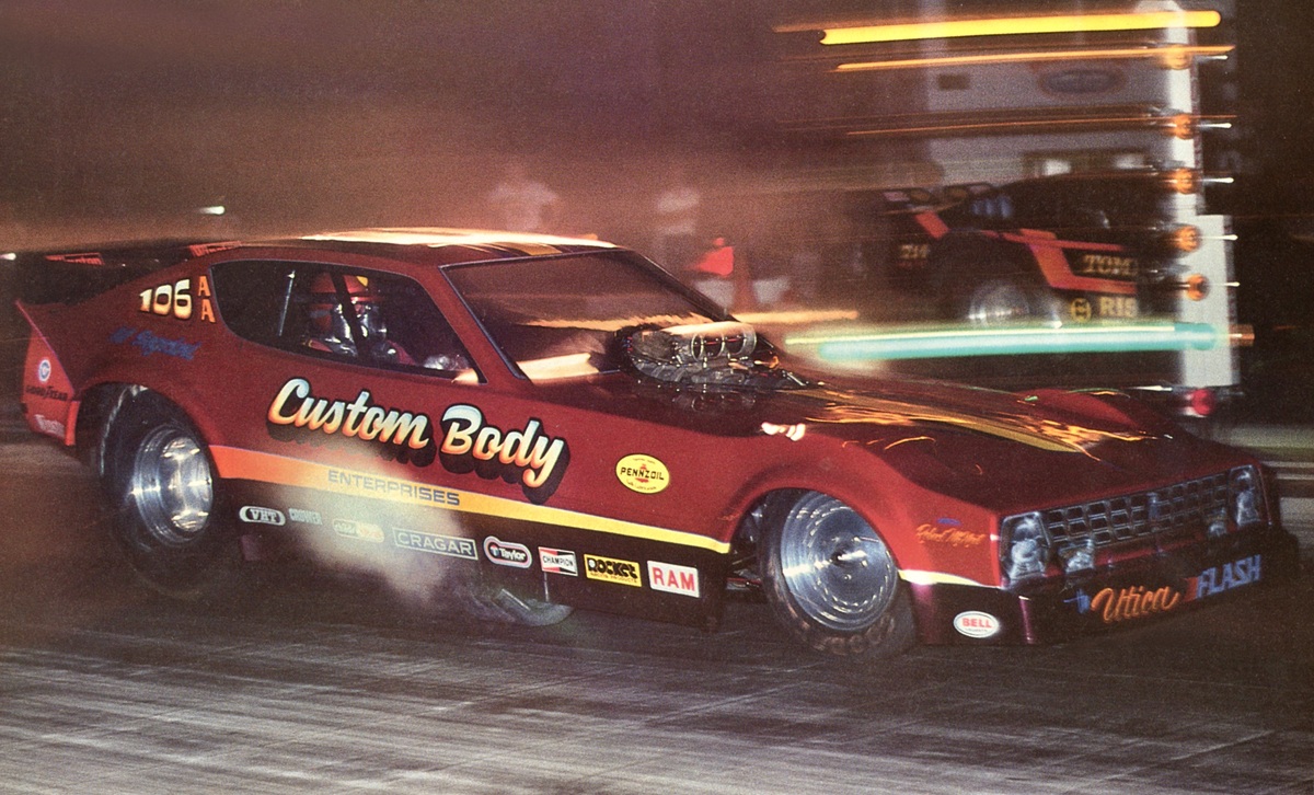 In the 1970s, Funny Cars still bore a resemblance to the production cars they were based on – albeit stretched in length and fitted with oversized rear spoilers. One of the standout body styles by the late ’70s was the Plymouth Arrow.