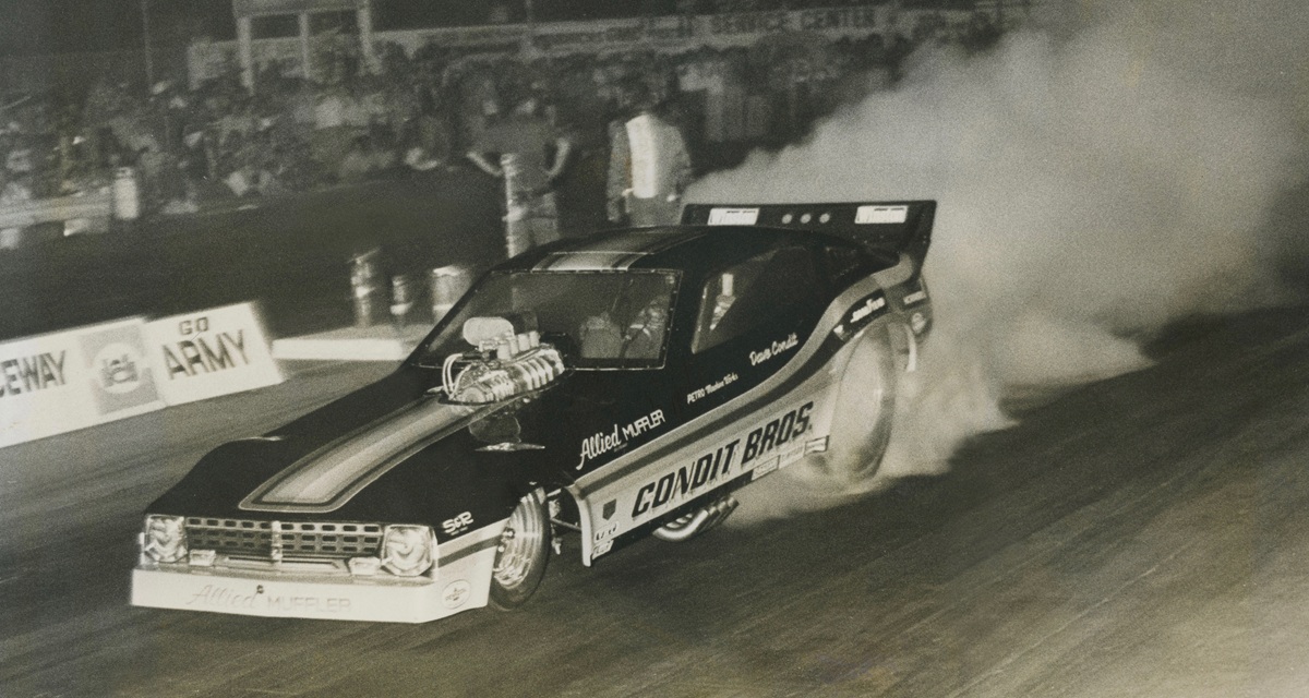 The Condit family fielded a show-stopping Arrow at OCIR in 1978, built by Steve Plueger with a 480ci KB HEMI engine. Cousins to John Force, their cars were often “Best Appearing” winners.