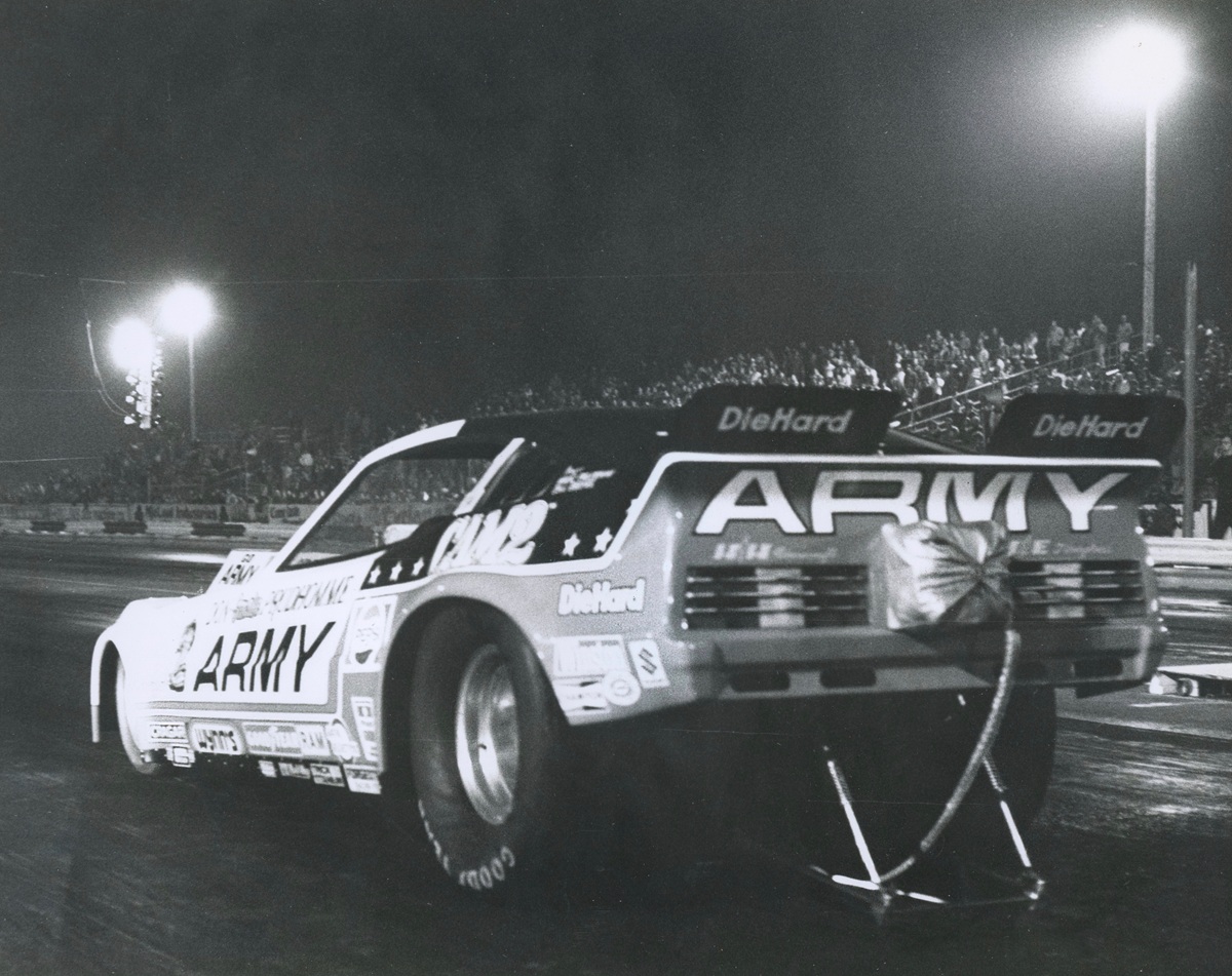 The new car made its national debut at the 1977 NHRA Winternationals, featuring a fresh H&H chassis, Ed Pink HEMI® engine power and a sleek new fiberglass Arrow body. The Army Arrow instantly proved the move was a good one. It qualified #1 with a 6.14-second run at 241.64 mph. A quicker 6.03 at 247.25 mph followed – on the way to winning the event. The aerodynamic shape of the Arrow clearly worked.