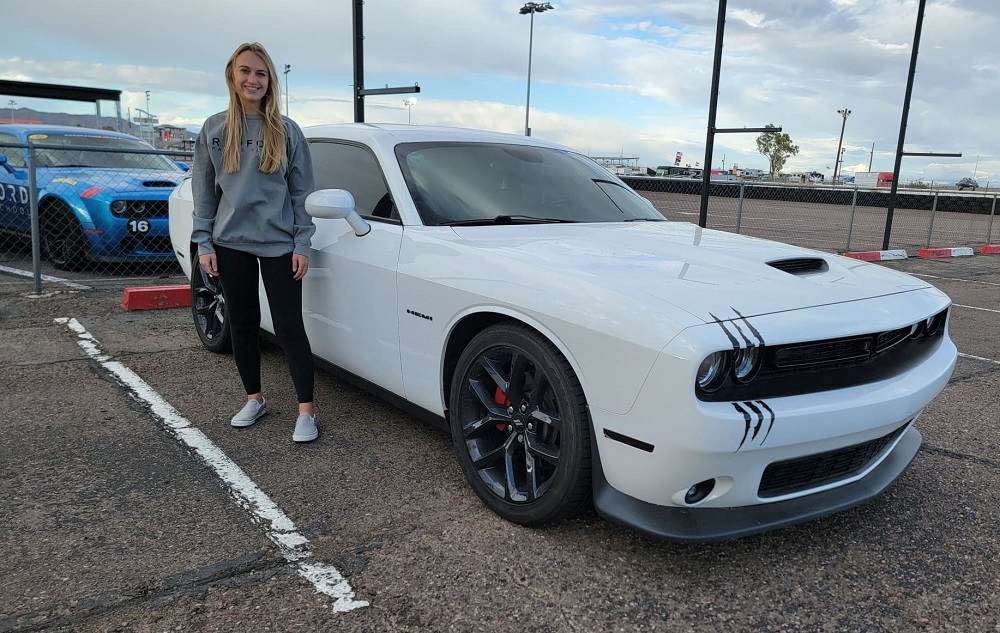 While this Challenger R/T is Kaelyn Andresen’s first Dodge, she comes from a Mopar®-heavy household. Her dad currently drives a 2021 Ram and her mom currently drives a Jeep® Grand Cherokee Trackhawk, having previously owned a Ram 1500 TRX. Andresen points out that they are a “V8 family for sure” and that they all love fast vehicles.