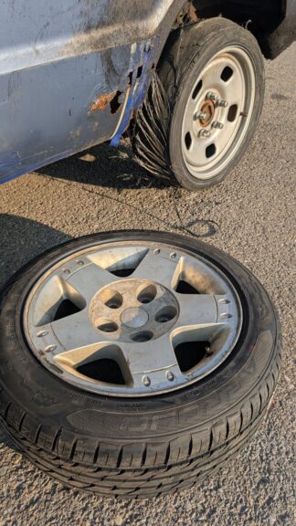 Using a floor jack positioned backwards in the van, they lifted the rear axle, then backed the tow dolly hard enough to knock the jack out and drop the van onto the dolly. The final sixty miles were completed backwards on flat tires at 3 AM, because apparently that seemed like the most reasonable option available.