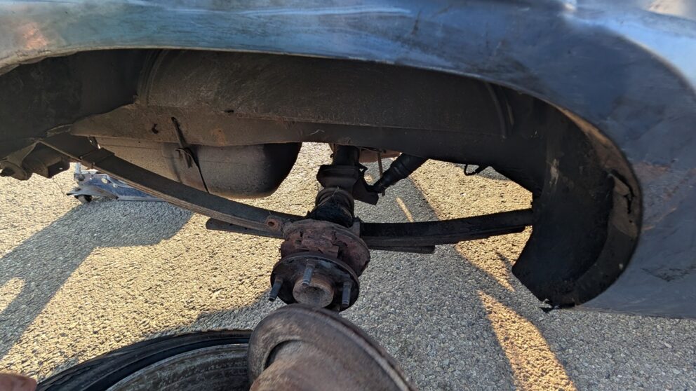 The van’s compromised street manners extend to basic transportation logistics. The rear suspension setup leaves insufficient clearance for the back bumper and gas tank assembly when tires lose air pressure. “There’s not enough room without tire for the back bumper/gas tank to not hit the ground,” Lenny explains, making every tire failure a potential road-scraping adventure.