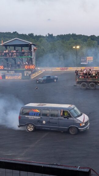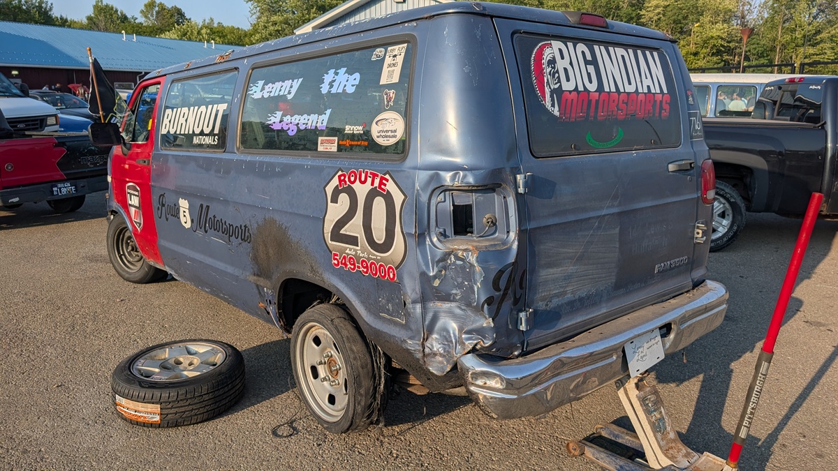Each competition becomes both a performance and an endurance test. The van’s appearances at The Big Indian Drift Pit have made it a crowd favorite, its distinctive look and tire-shredding capabilities drawing attention from both competitors and spectators. Among rows of pristine muscle cars and carefully crafted customs, Lenny’s creation stands out with just the right amount of bonkers and a boatload of desire unleashed from the constraints of practicality or common sense.