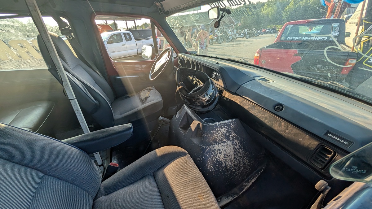 The van represents pure automotive performance art, if performance art involved destroying tires and potentially everything else in the immediate vicinity. It’s the logical endpoint of a philosophy that began with using light poles as drift anchors and continues with backwards highway travel on flat tires.