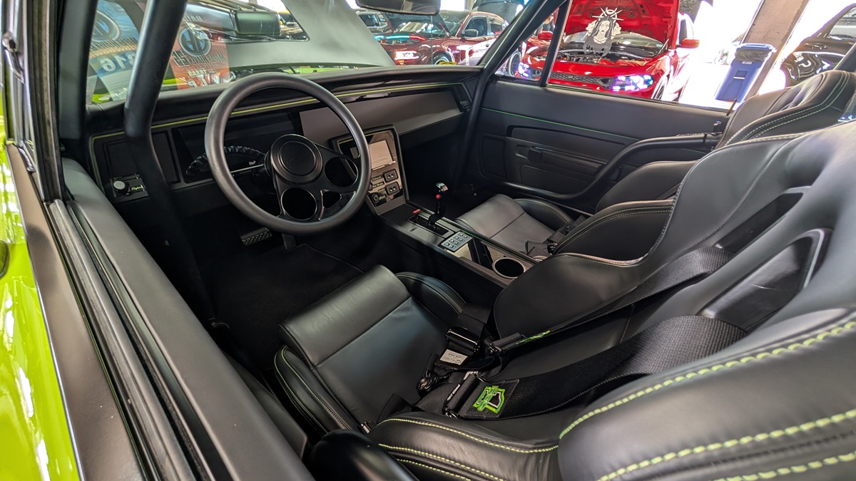 Underneath, the Charger rides on an Art Morrison rear suspension with tubs to accommodate those massive rear tires. The front end features an aftermarket K-member, coilovers and rack-and-pinion steering for improved handling dynamics. Wilwood brakes with six-piston front calipers and four-piston rears, assisted by hydroboost (necessary given the lack of engine vacuum) provide the stopping power needed to rein in all that horsepower.