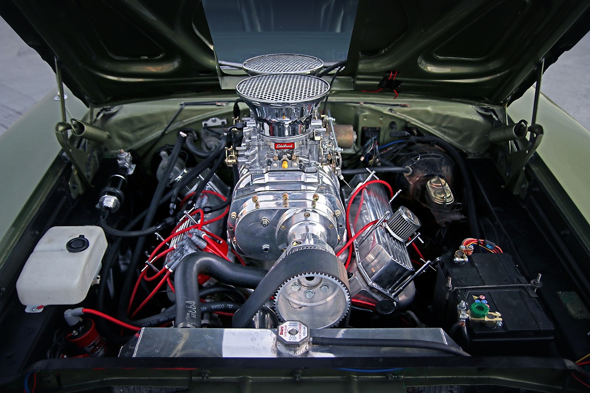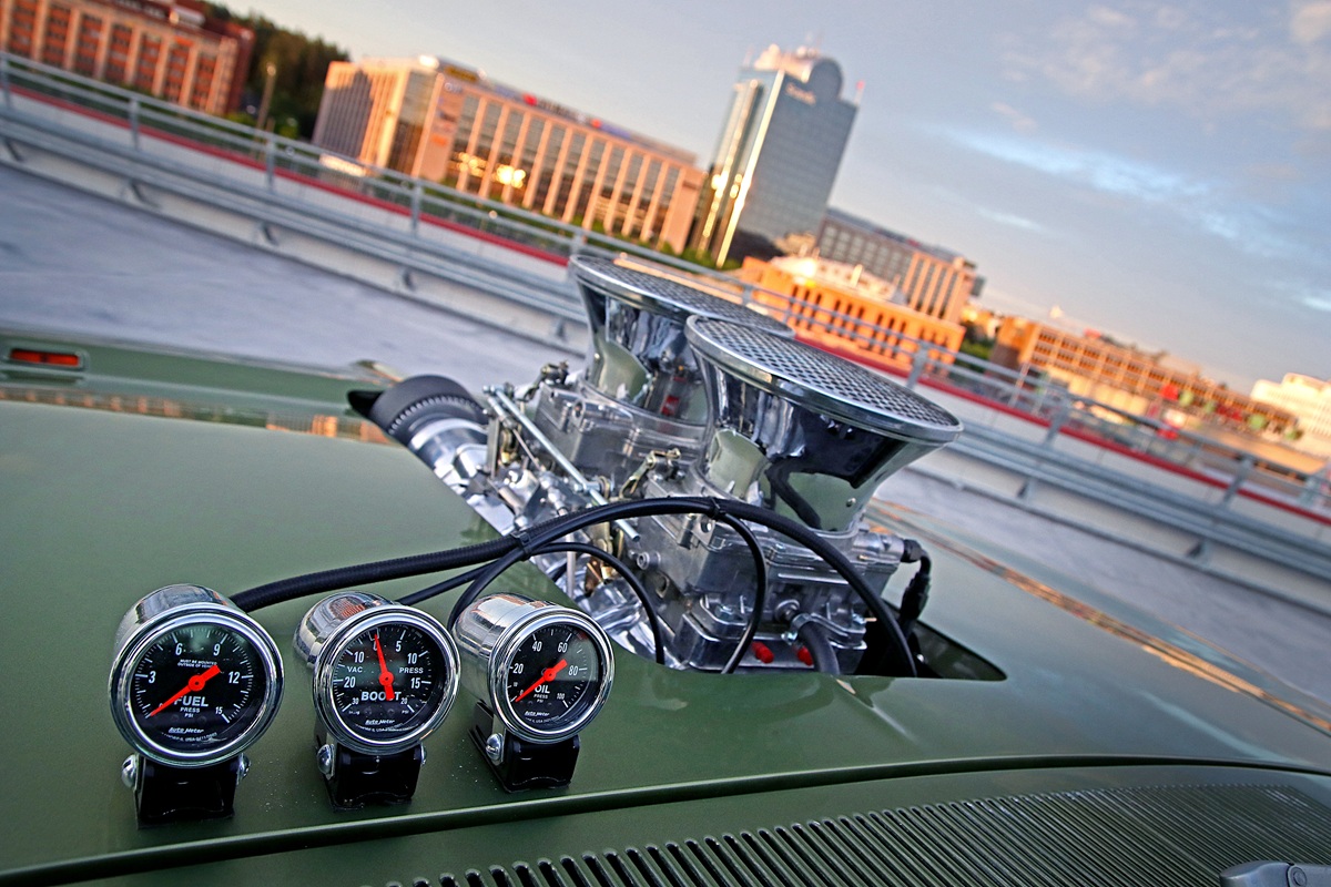 What about the engine and powertrain? Up front is a 440 cui V8 with a fairly mild supercharger – a 6-71 – that produces 10 psi, or about 0.7 bar.