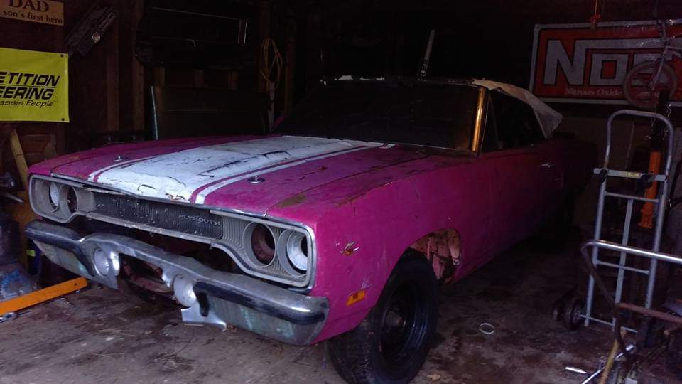 “Back on April 15, 2015, I heard the car was still around and created a website while posting on the ‘Moulin Rouge and Panther Pink Mopars’ Facebook Page to see if anyone in the Mopar and Muscle Car community had any info on the Road Runner,” said Gary. “I got a call from Dave Belcarz, a local Mopar enthusiast who knows a great deal about these cars, and he said the car was sitting up in Cadillac, Michigan. Dave gave me the owner’s phone number and decided to check out the Road Runner back in August of 2015. When I pulled into the driveway of where the car sitting and could see the front of the Road Runner peering out of an open barn door.” Again, overtaken by emotions, Gary approached the barn. He could feel a sense of magic. The more he looked over the car, the more he could feel the presence of his father’s spirit. “I looked at the car, and sure enough, it was my late father’s Road Runner Convertible. There were certain clues on the modifications he made back in the day, such as pink painted wheel wells and homemade white ‘Dust Trail’ side stripe.” The 35-year search was finally over, Gary had finally located his father’s car. Now he had to make the deal and get the Road Runner back to his home. “I purchased the Road Runner on December 18, 2015, and I was more nervous on that day than my own wedding!