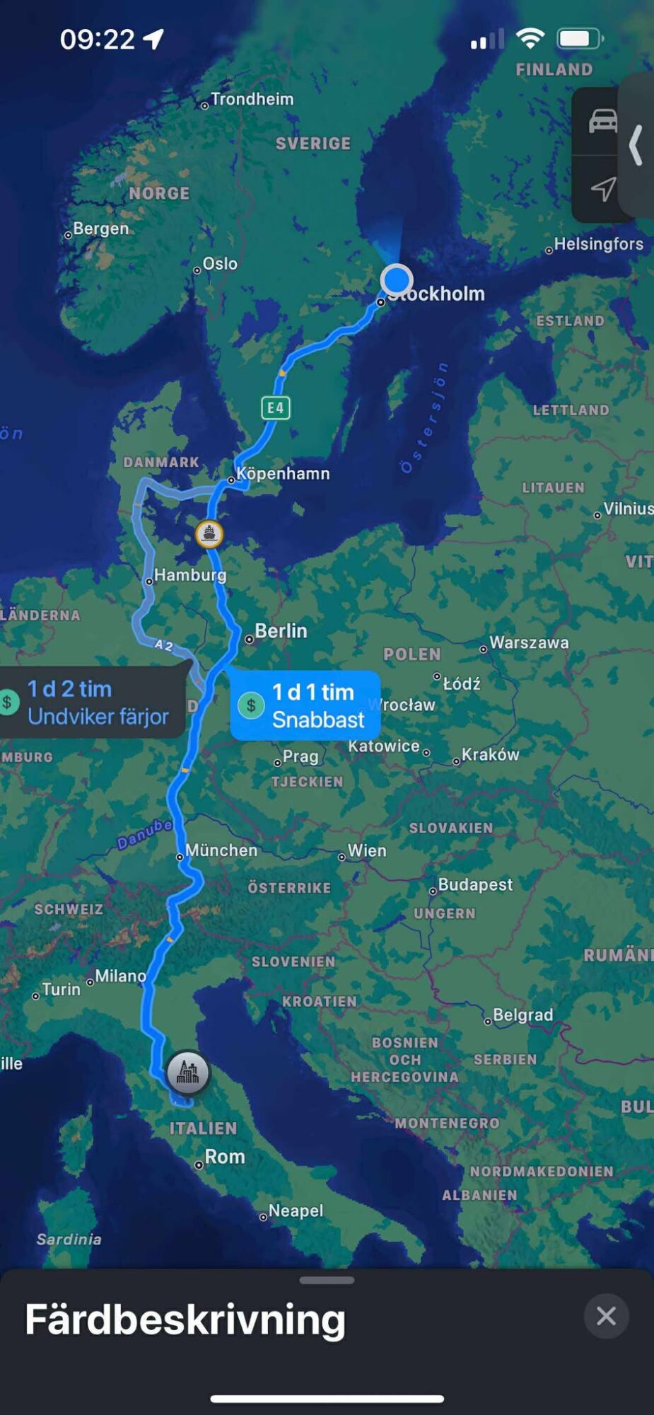 The first leg was Norrtälje to the German town of Hamburg, roughly 13 hours. Once there, Johansson got lost for a while.