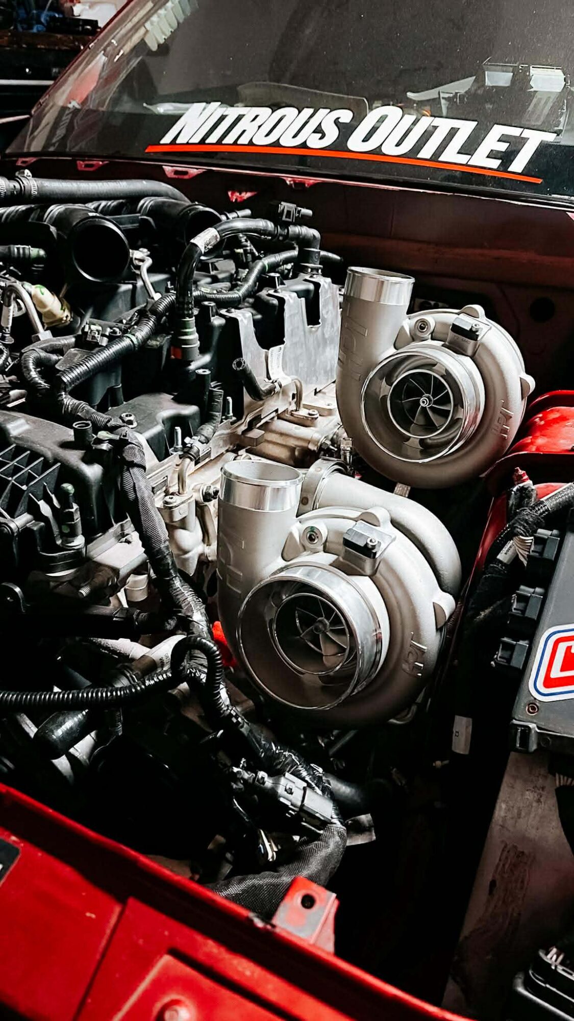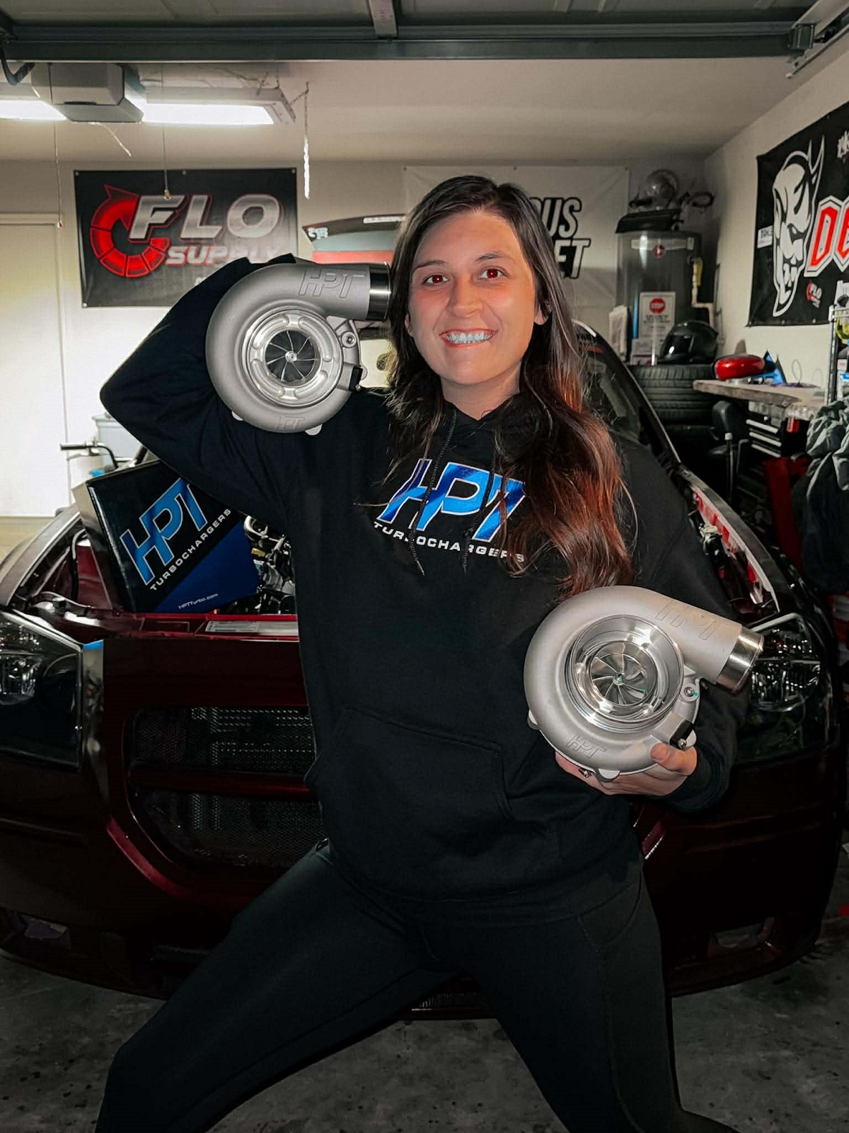 When Tori Dobbs takes to the track this year, the stock turbochargers will be gone and in their place, a pair of HPT 62mm units mated with Granatelli wastegates and blow-off valves. These new, bigger turbochargers will help provide gobs more power thanks to tuning efforts by Accelerated Racing Solutions. With that extra power, Garrett Dobbs believes that Tori and this Dodge Magnum will be running in the 8-second range.