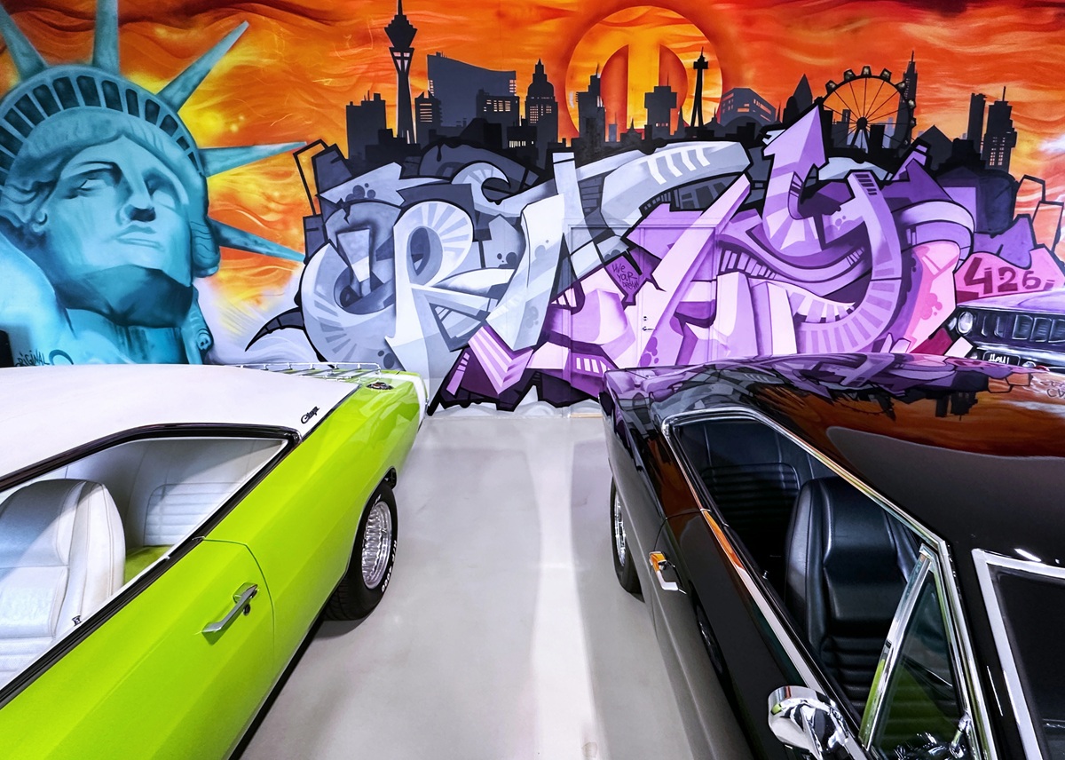 “I had four requirements: a detail from the Statue of Liberty, a purple ’Cuda, and the words ‘C R A Z Y’ and ‘Live your dream,’” Hellström says.