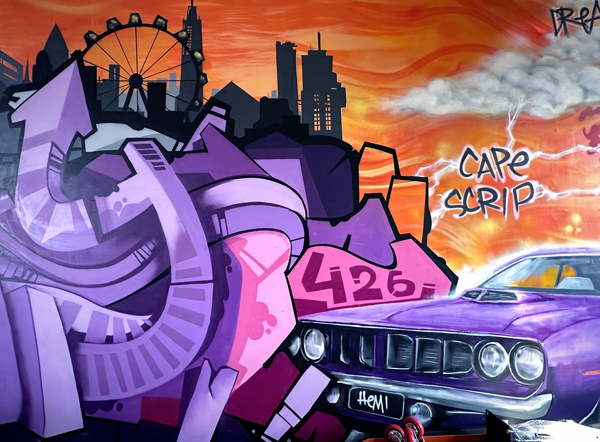 an enormous graffiti wall just as vibrant.