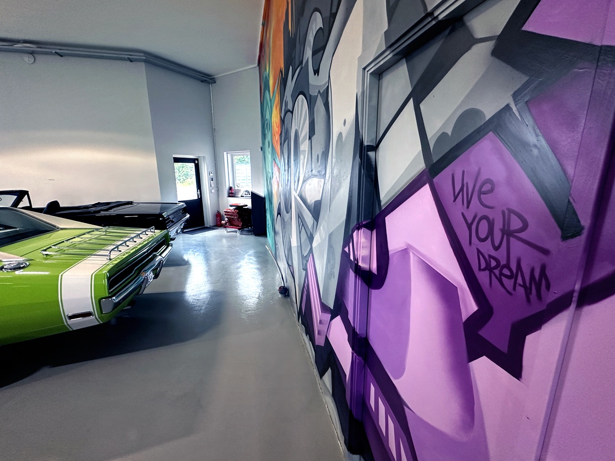 Well then. He may be a little older physically after many years in the fishing industry, but the mind is still young. I ask him about the spectacular graffiti mural in the garage — a piece that feels very much alive.