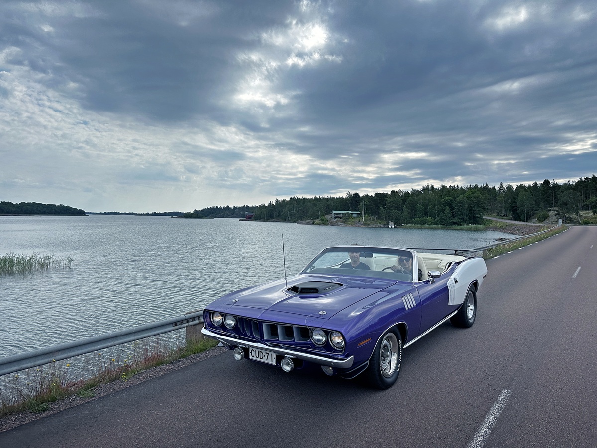 “I moved to Åland from Kaskö – on the Finnish mainland – in December 2014. At the time, I owned four Mopars,” Ralf Hellström says. “First a ’71 ’Cuda with a 472-cubic-inch HEMI® – the convertible you rode in – and another ’71 ’Cuda 340 convertible. I later sold that one to Älvdalen in Sweden. When I moved, I also owned a 1970 Plymouth GTX 440 Six Pack and a red 1970 Dodge Challenger with a four-speed manual. Also a convertible. I also had a 2009 Ford Mustang GT500, but that one doesn’t count,” he adds with a grin.